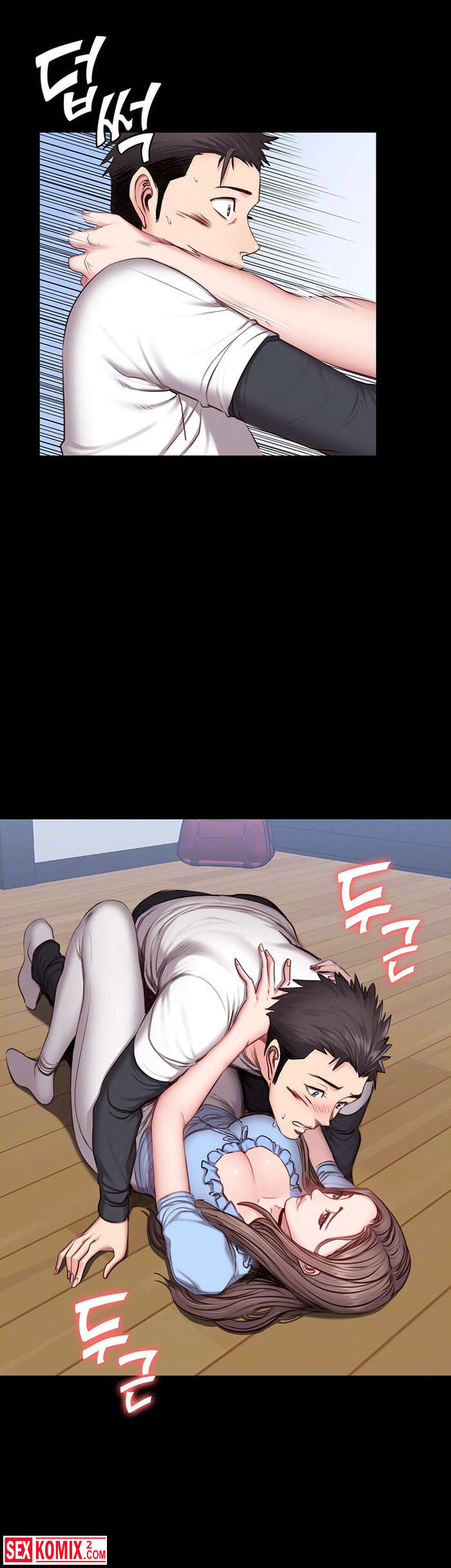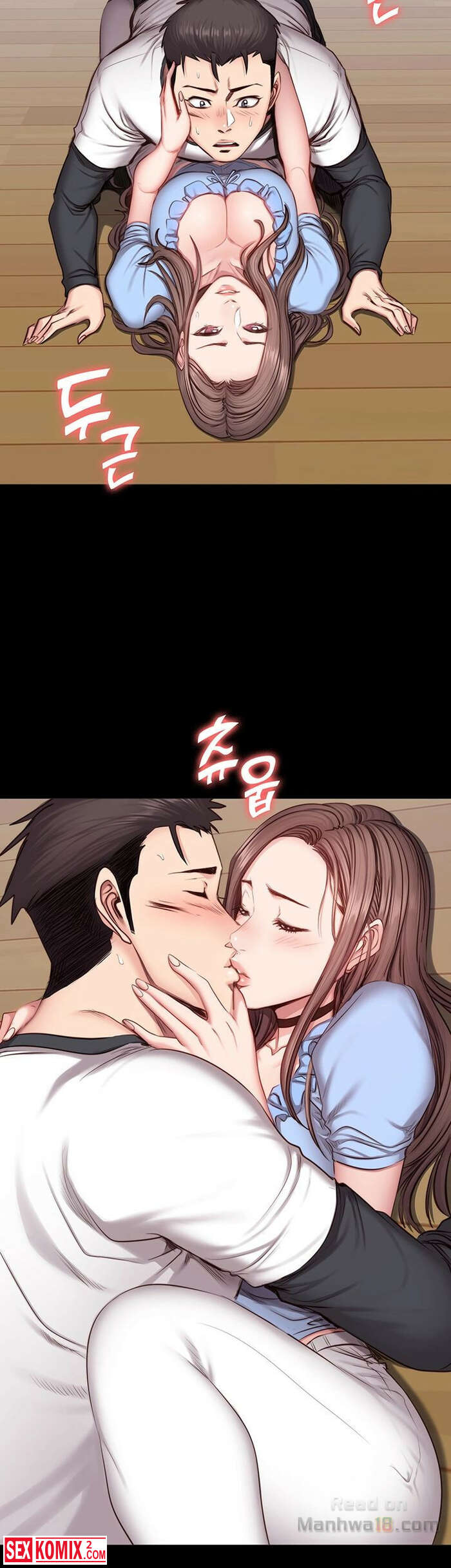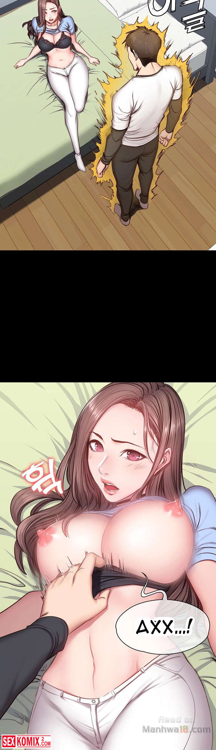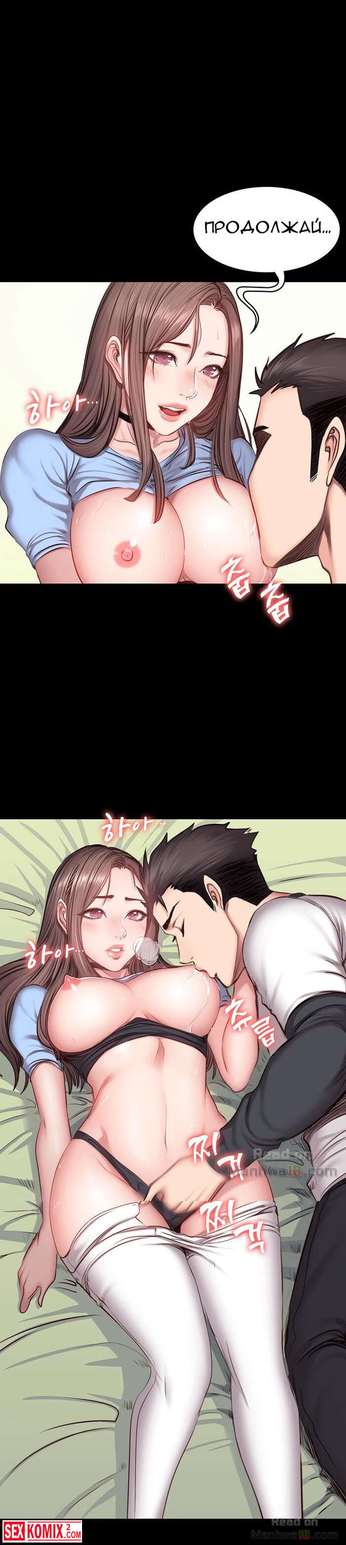 Порно комикс Фитнес. Часть 14 и 15. Девушка подвезла парня и по дороге попросила его помочь ей по дому, на самом деле это был предлог чтобы затащить его к себе домой.