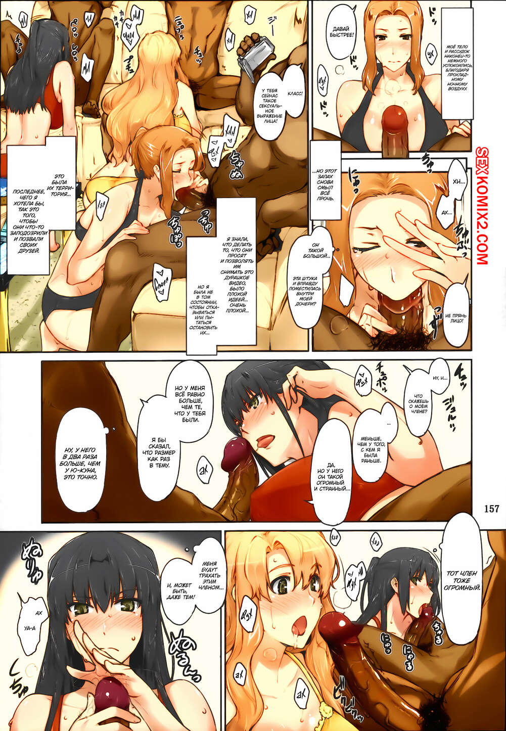 Порно комикс Tachibanasanchi no Dansei Jijou Matome Ban. Часть 3. Jin Горячие красотки встретились с темнокожими парнями, чтобы как следует с ними повеселиться. Девушки разделись и стали сосать большие хуи парней, после чего дали им себя выебать.