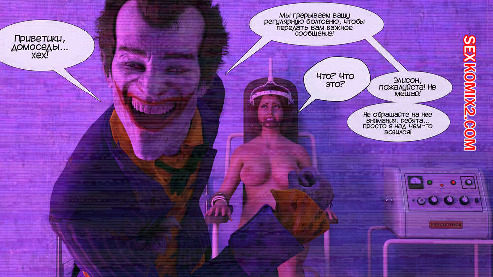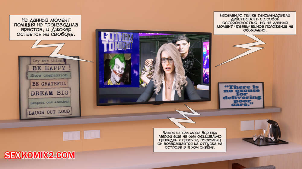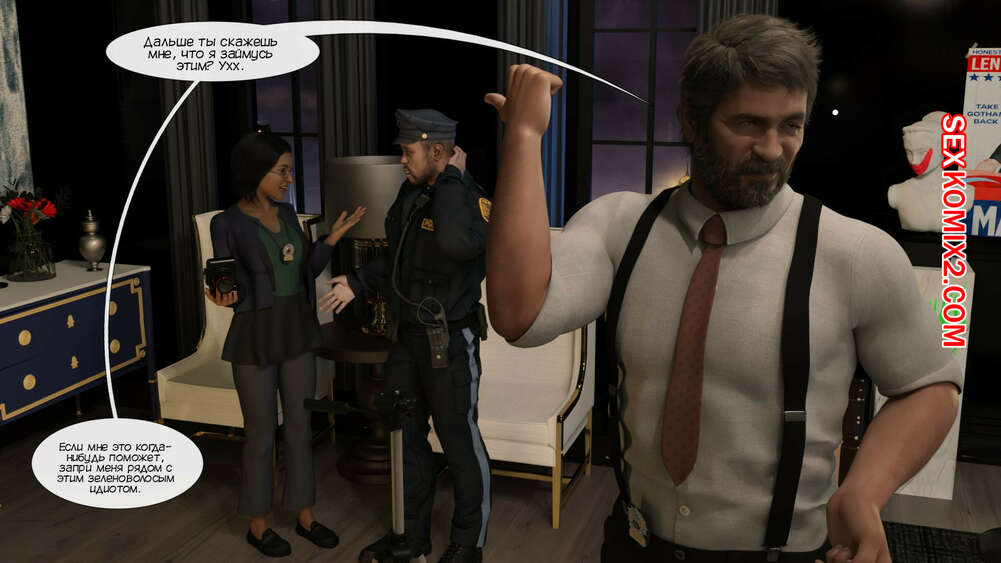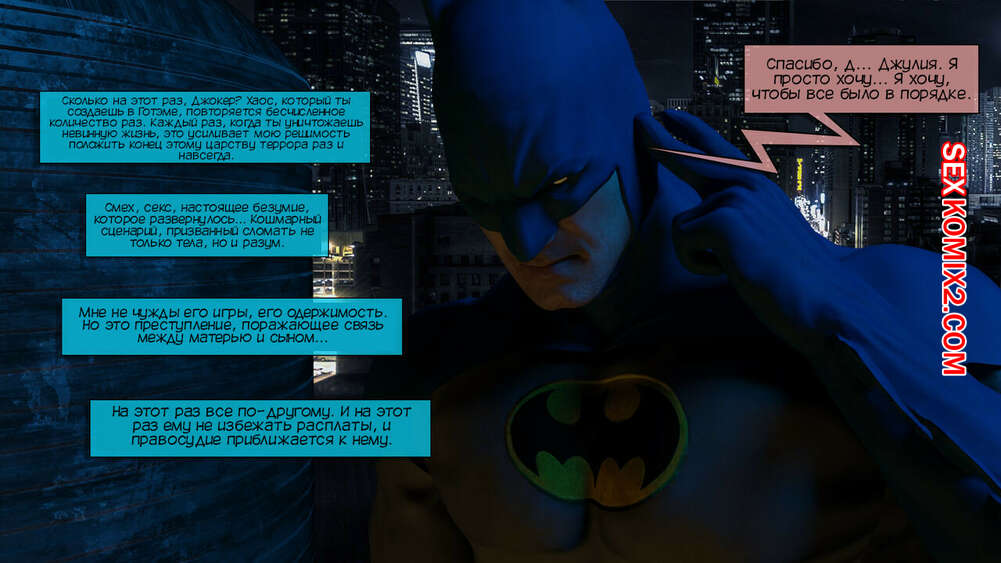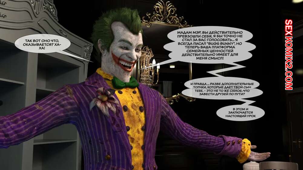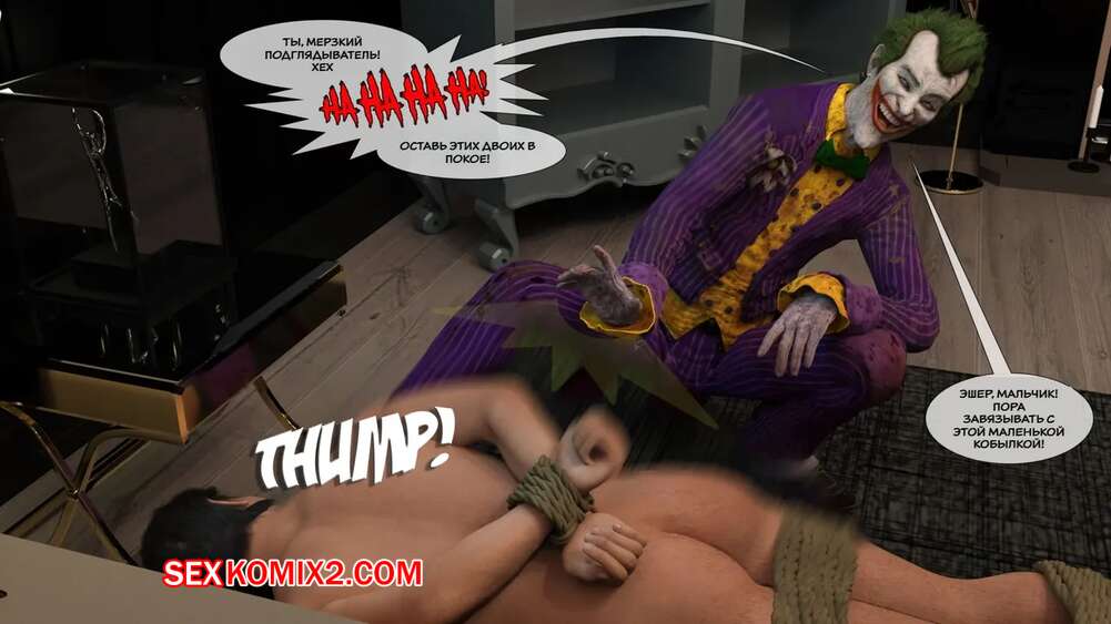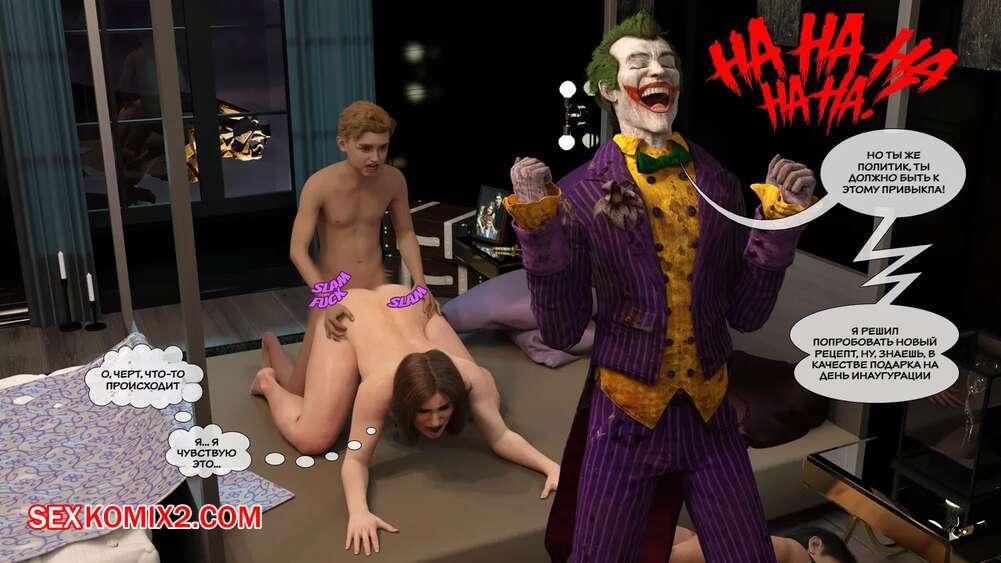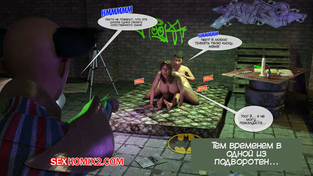 Порно комикс Бэтмен. Желание в семье. A Desire In The Family. Garak3D. Джокер пробрался в квартиру к семье мэра Готэма. Он связал мужа мэра и заставил его наблюдать за тем, как его жена трахается со своим собственным сыном, а парень кончает ей в пизденку.