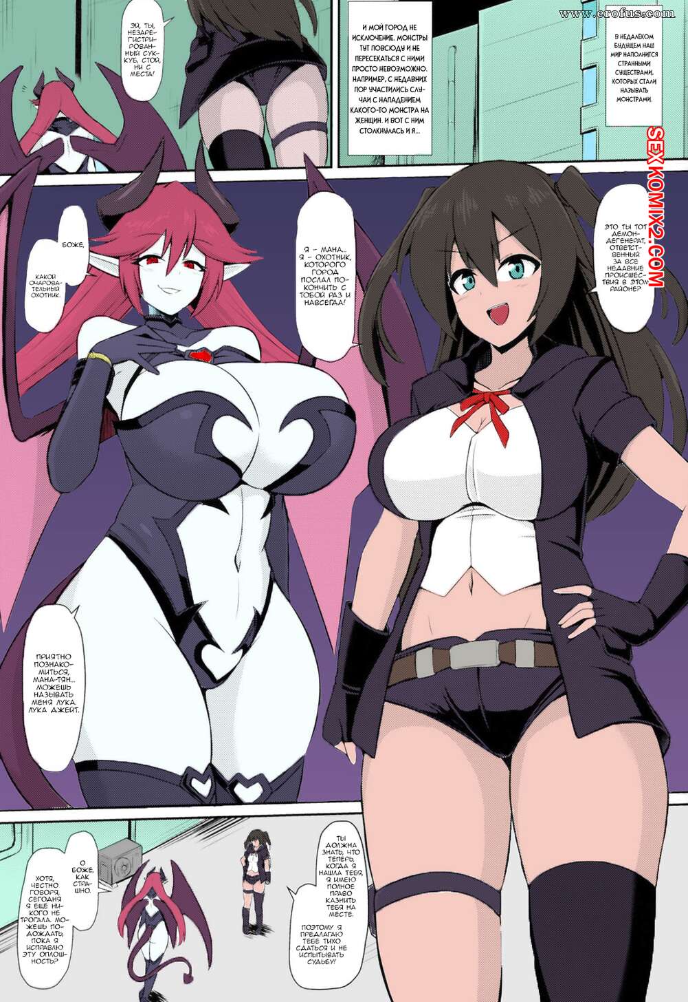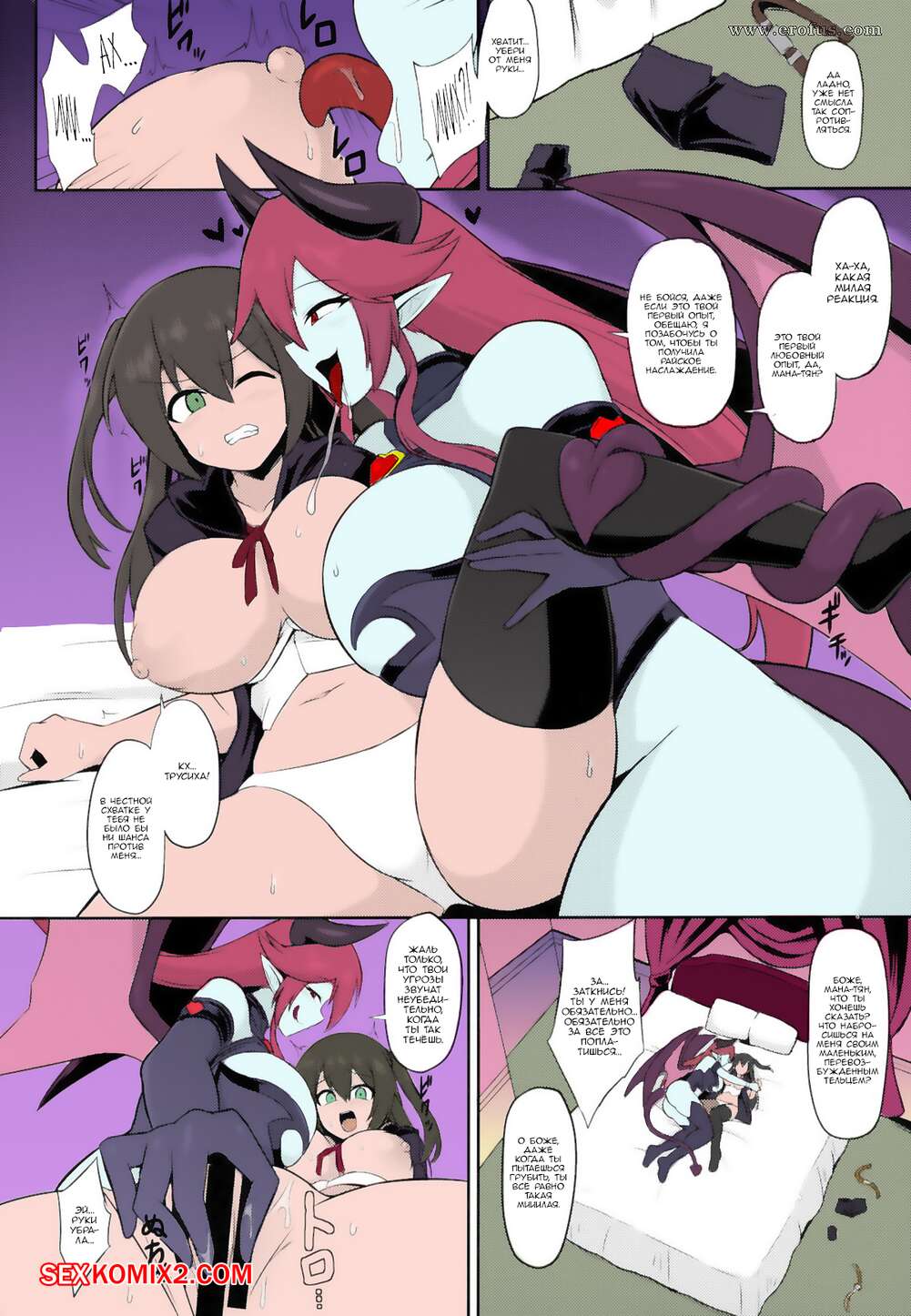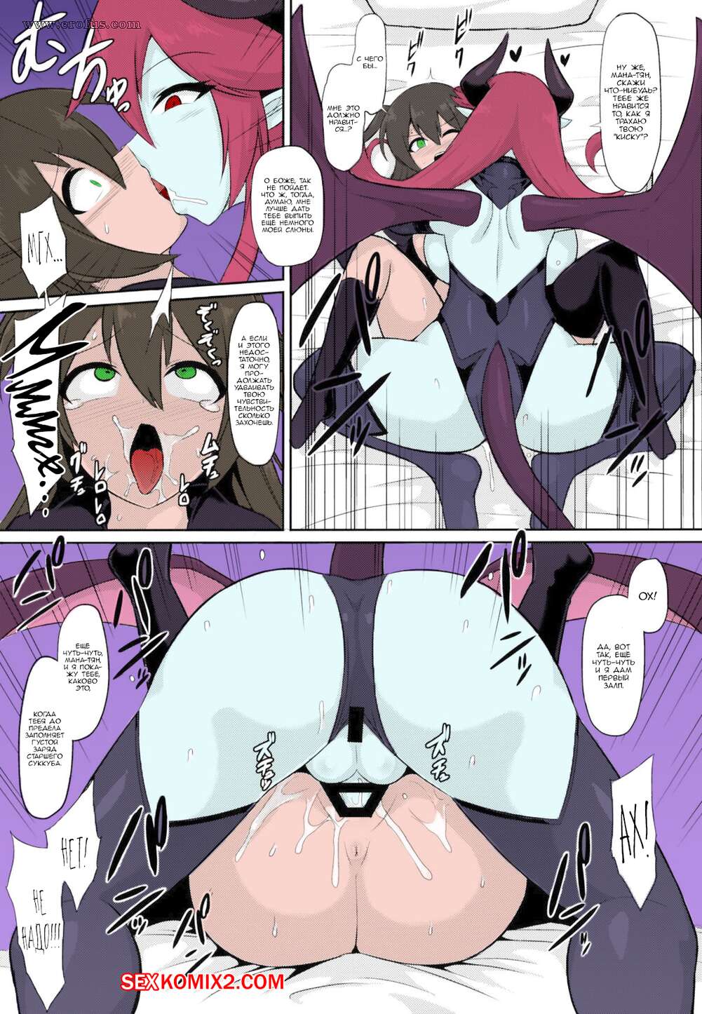 Порно комикс Похотливая тренировка на гребне удовольствия суккуба лесбиянки. Ikameshi Сексуальная красотка суккуб была очень возбуждена и решила повеселиться с горячей брюнеткой. Она раздела ее и выебала с помощью своего большого хуя, заполнив девушку спермой.
