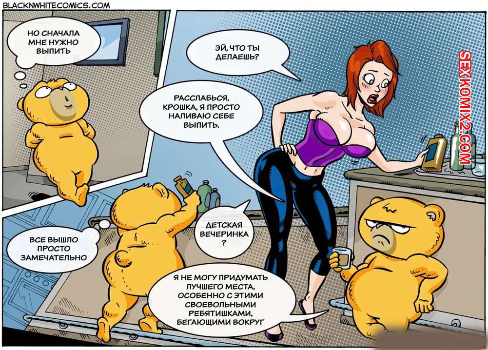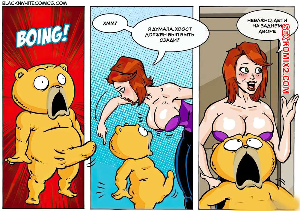Порно комикс ТЭД. Часть 1. TED. BlackNWhiteComics. Сисястые милфы без ума от огромного члена плюшевого медведя. Красотки раздеваются перед ним и раздвигают ножки, чтобы Тэд хорошенько их выебал и кончил в них.