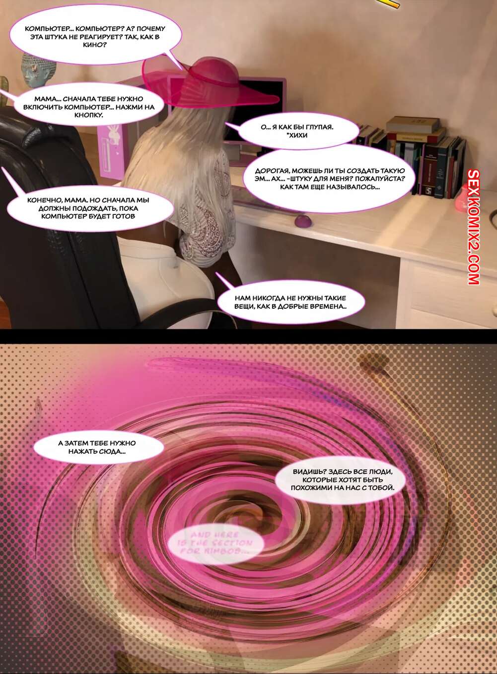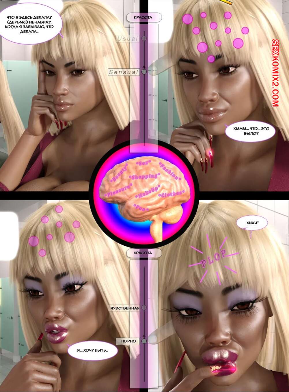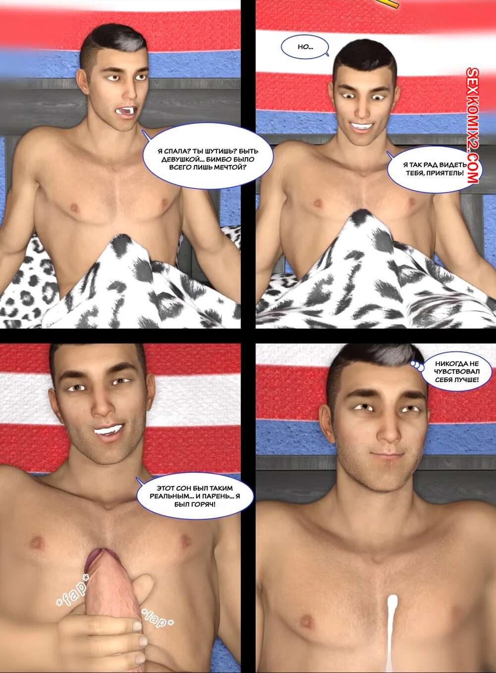Порно комикс Бимбо внутри. Часть 2. The Bimbo Within. Amazeroth Молодые парни пользуются устройством, благодаря которому их тела меняются и они превращаются в сексуальных девушек. Красотки раздеваются перед парнями с большими хуями и хорошенько им отсасывают, после чего занимаются страстной еблей.