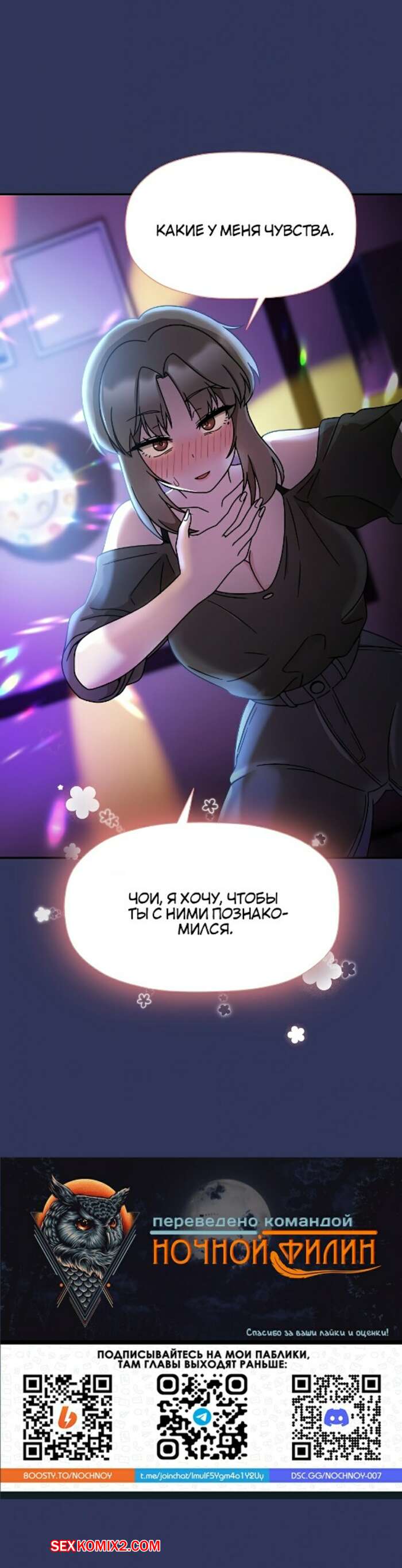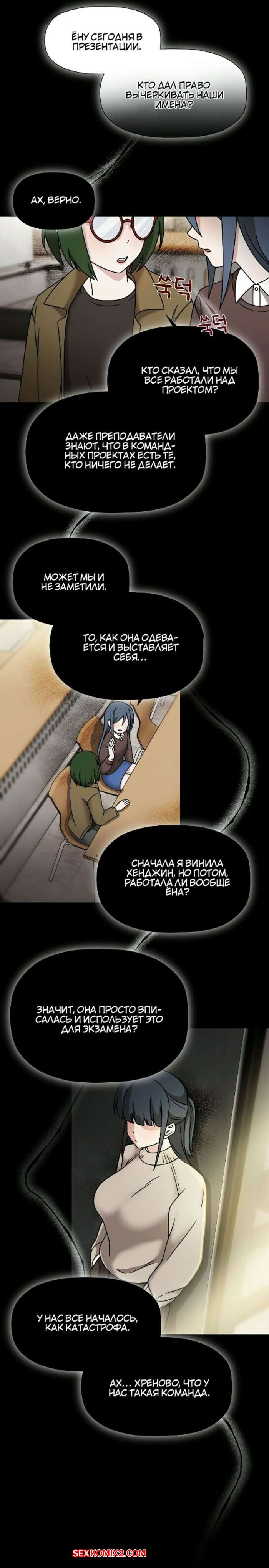 Порно комикс Набор подписчиков. Части 46 и 47. Recruiting followers Сексуальная брюнетка пришла ночью в комнату к своему дружку и разделась перед ним. Красотка отсосала большой хуй парня и получила его сперму, после чего вернулась в свою комнату.