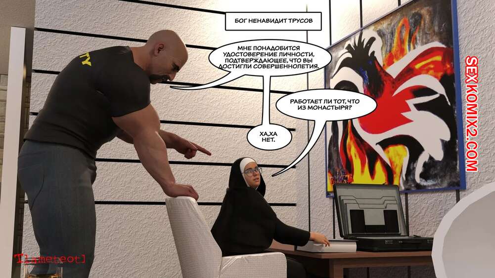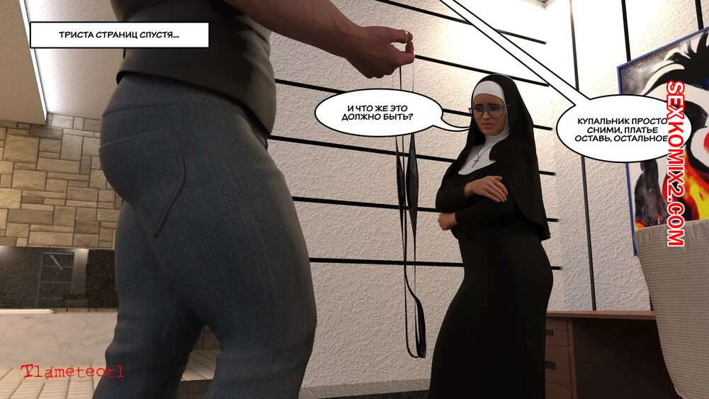 Порно комикс Игрушка. The Toy. Tlameteotl. Горячая брюнетка монашка стала игрушкой для двух парней с большими хуями. Они раздели девушку и дали ей отсосать свои большие хуи, после чего хорошенько выебали ее пизденку.