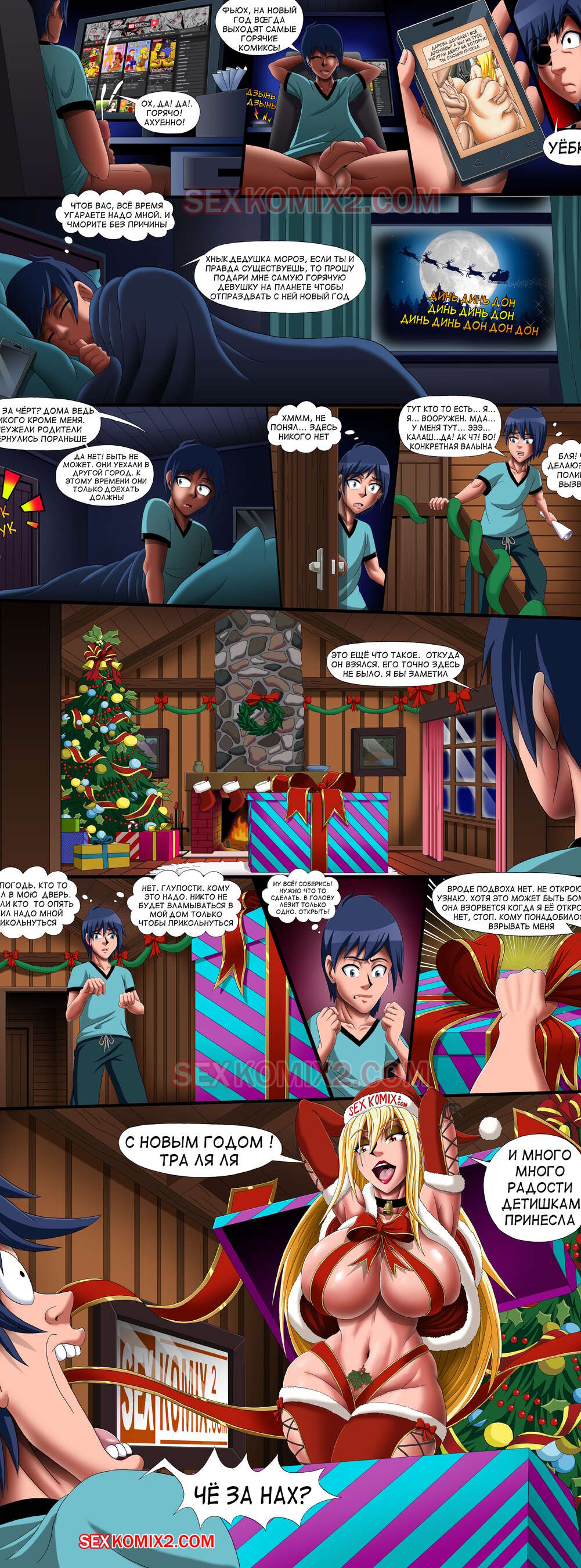 Приключения Анастасии. by sexkomix2.com. Неожиданные подарок получил один из наших пользователей сайта. Из коробки вылезла Анастасия готовая к сексу. Парень обомлел, он не верит своему счастью. С новым годом!