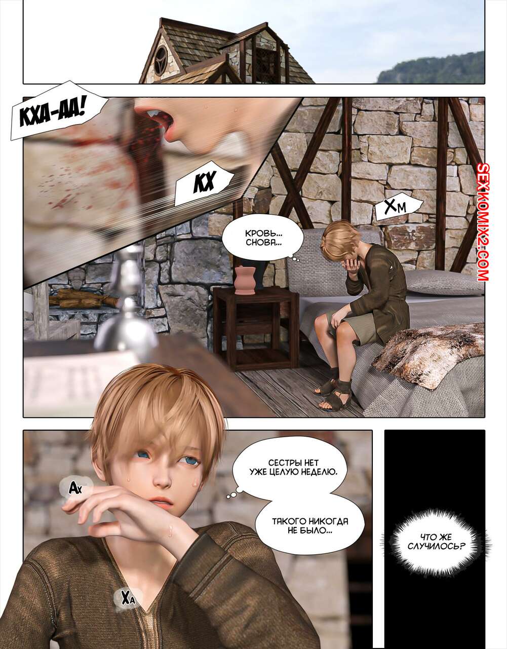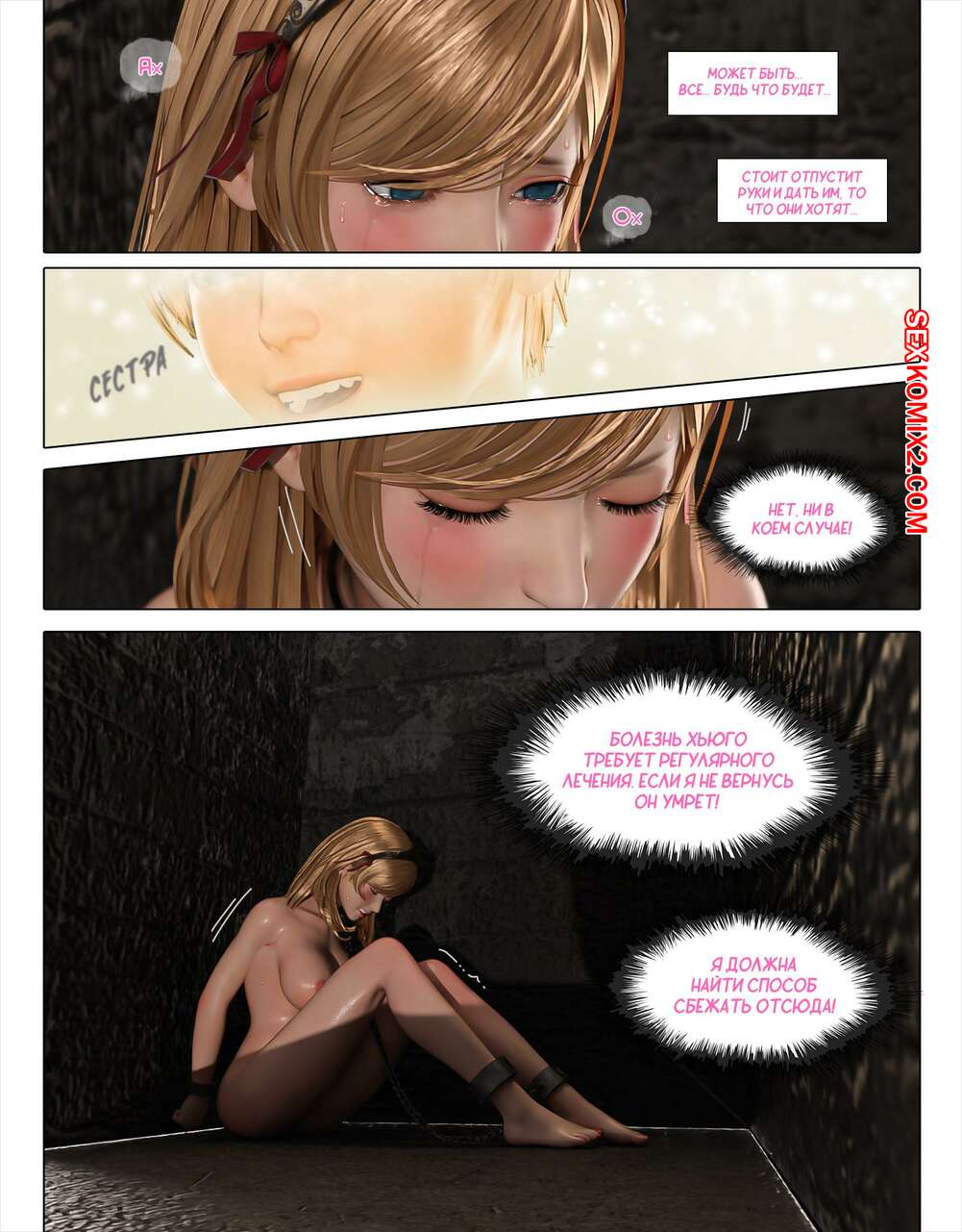 Порно комикс Роуз погружается во мрак. Часть 2. PISANTO Сексуальная блондинка попала в плен к парням с большими хуями. Они раздели и связали девушку, после чего хорошенько выебали ее своими большими хуями.