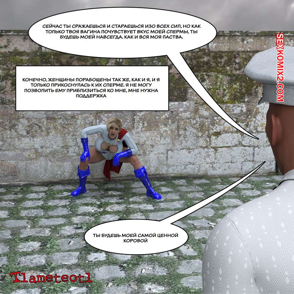 Порно комикс DC. Пауэр Герл против Лорда Лактозы. Power Girl Vs Loard Loctose. Tlameteotl. Сексуальная блондинка супергероиня сражалась со злодеем и потерпела поражение. Он раздел красотку и дал ей отсосать свой большой хуй, после чего хорошенько выебал ее пизденку.