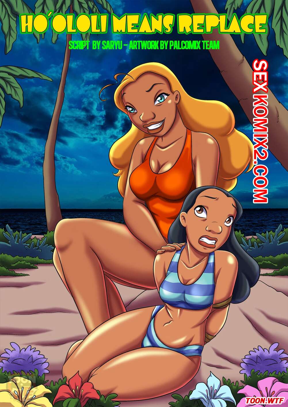 Порно комикс Лило и Стич. Хо Ололи означает замену. Ho Ololi Means Replace. Palcomix Сисястая блондинка связала горячую брюнетку и пошла встретиться с ее парнем. Девушка разделась и отсосала большой хуй парня, после чего дала ему трахнуть себя.
