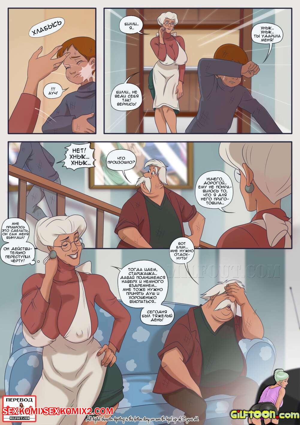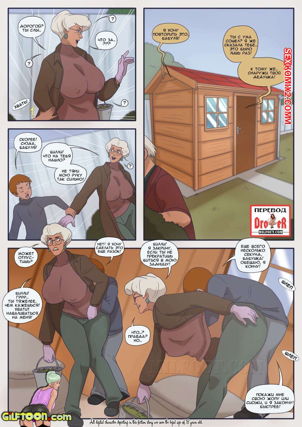 Порно комикс Обеденное время. Часть 2. GilfToon Молодой парень больше не может без пизденки бабушки. Он пробрался к ней в комнату и стал ласкать ее, после чего хорошенько выебал ее своим большим хуем.