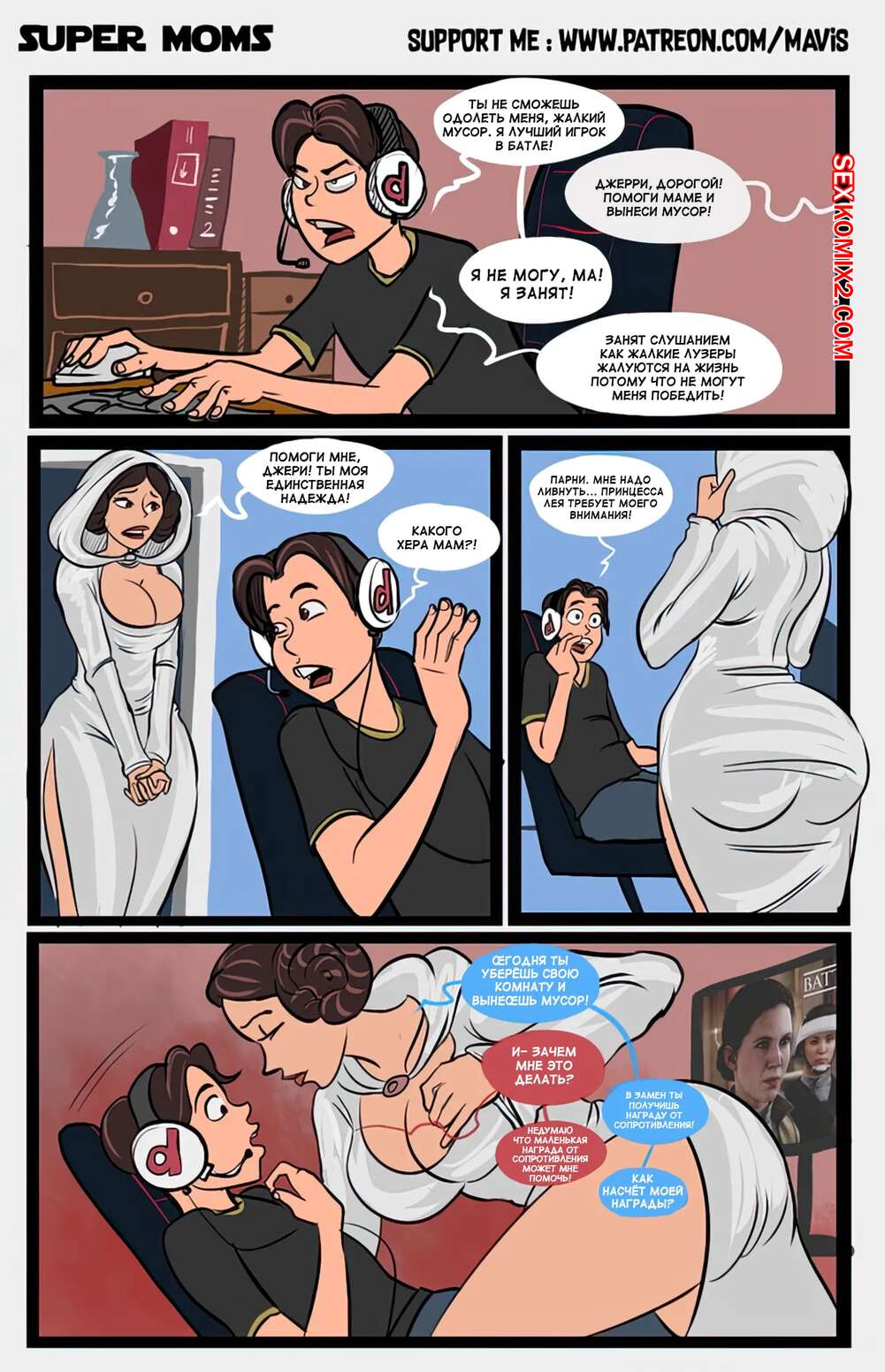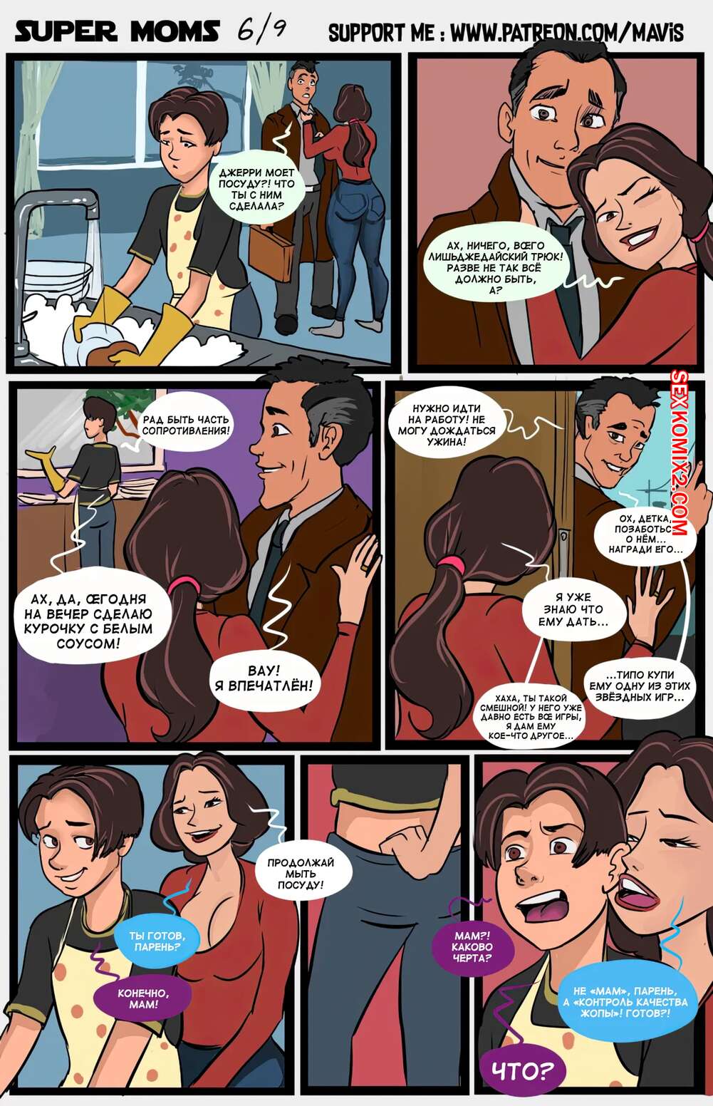 Порно комикс Супер мамы. Super Moms. Mavis Rooder. Горячие милфы без ума от больших членов своих сыновей. Оставаясь наедине с сыновьями, красотки раздеваются и ласкают их, после чего дают им себя выебать.