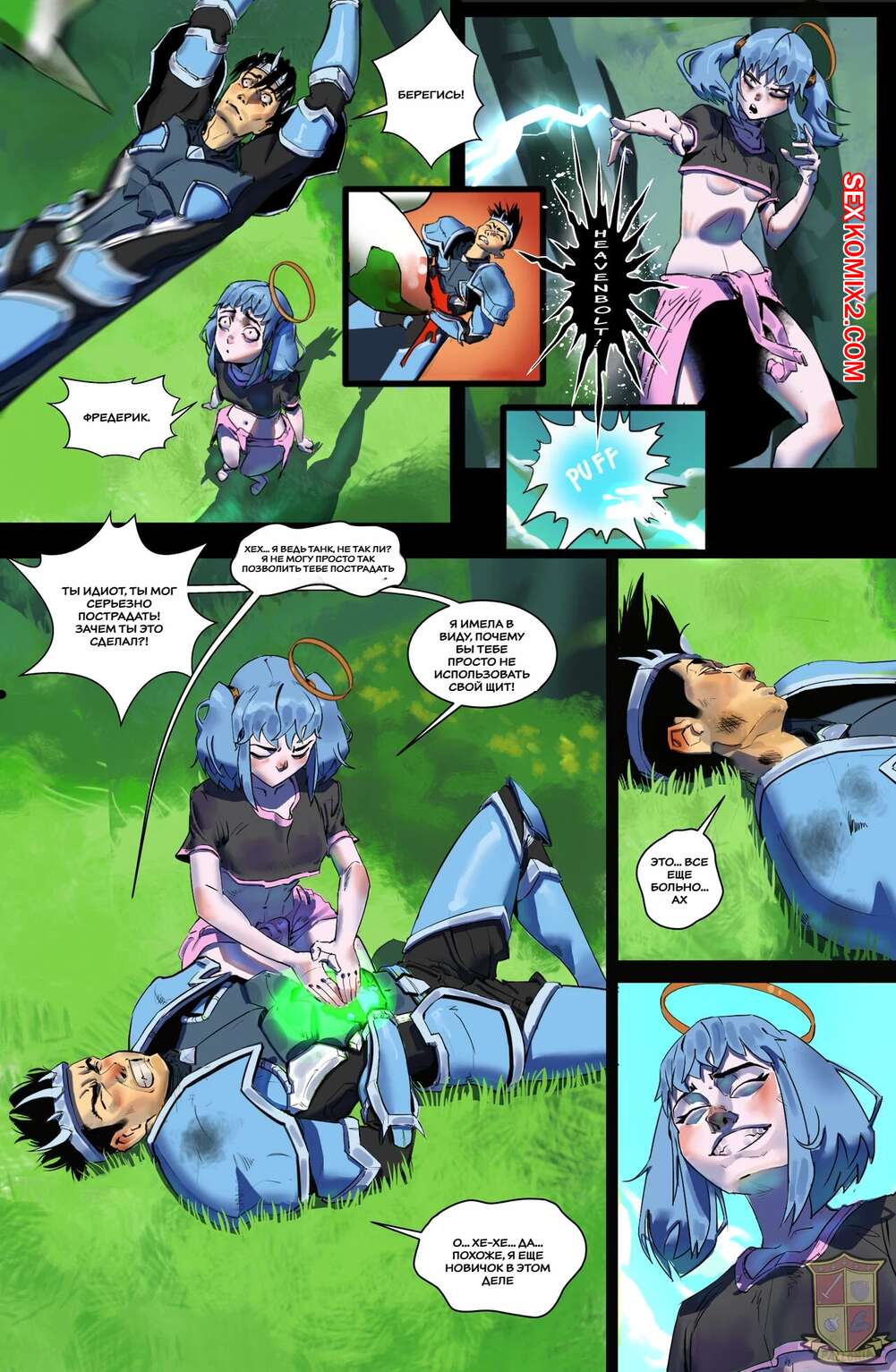 Порно комикс Жало. Stinger. Pallonia Comix. Сексуальная блондинка наткнулась на раненого парня и возбудилась при виде его огромного члена. Красотка разделась и стала сосать хуй парня, после чего дала ему себя выебать.
