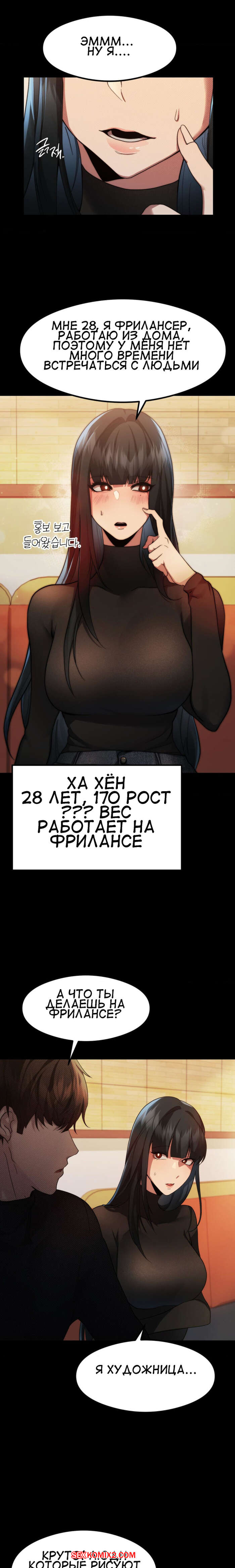 Порно комикс Открытый разговор. Часть 9. Open Talk Парень остался наедине с сексуальной брюнеткой и стал ласкать ее пизденку, возбуждая девушка. Красотка потекла и была готова отдаться парню, но им помешали их друзья.