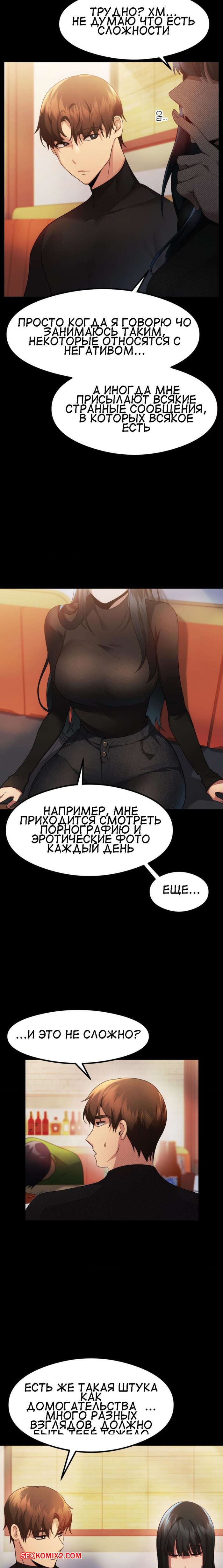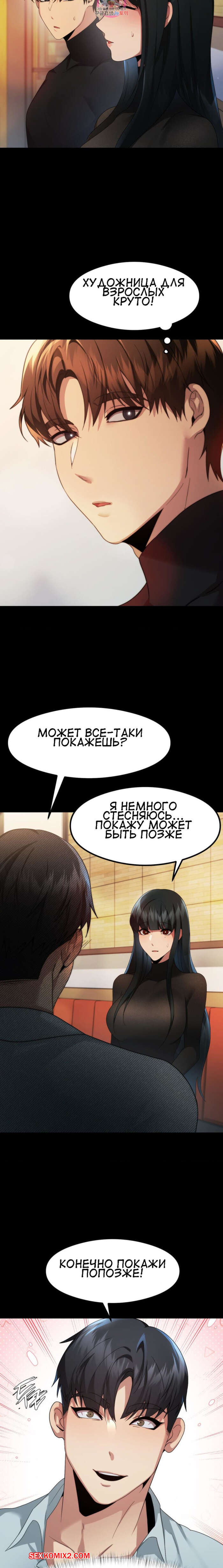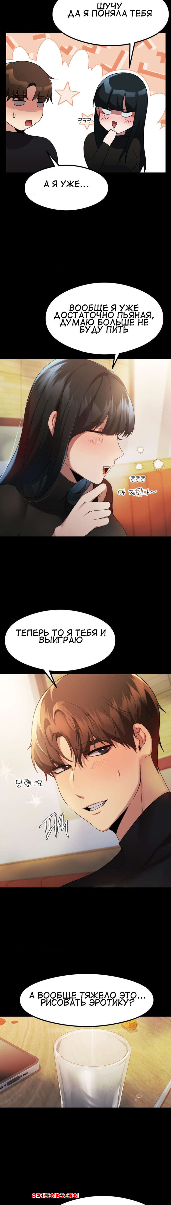 Порно комикс Открытый разговор. Часть 10. Open Talk Друзья продолжили проводить время вечер и выпивать, но сексуальная брюнетка возбудилась крайне сильно. Она стала тереться об парня и ласкать его член, желая ощутить его в себе.