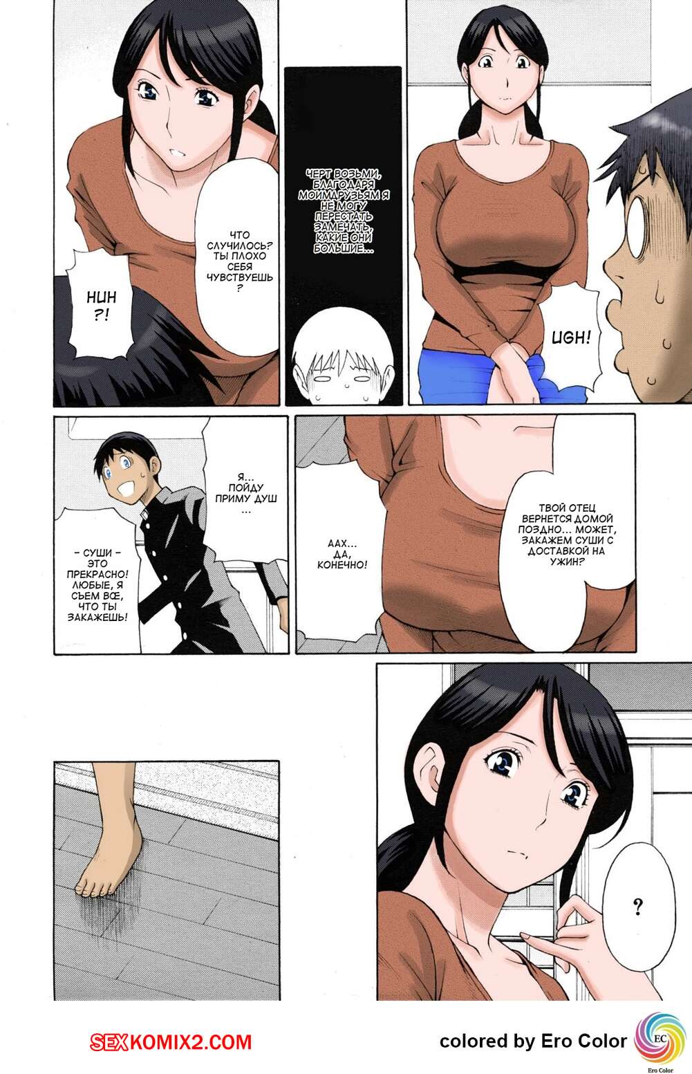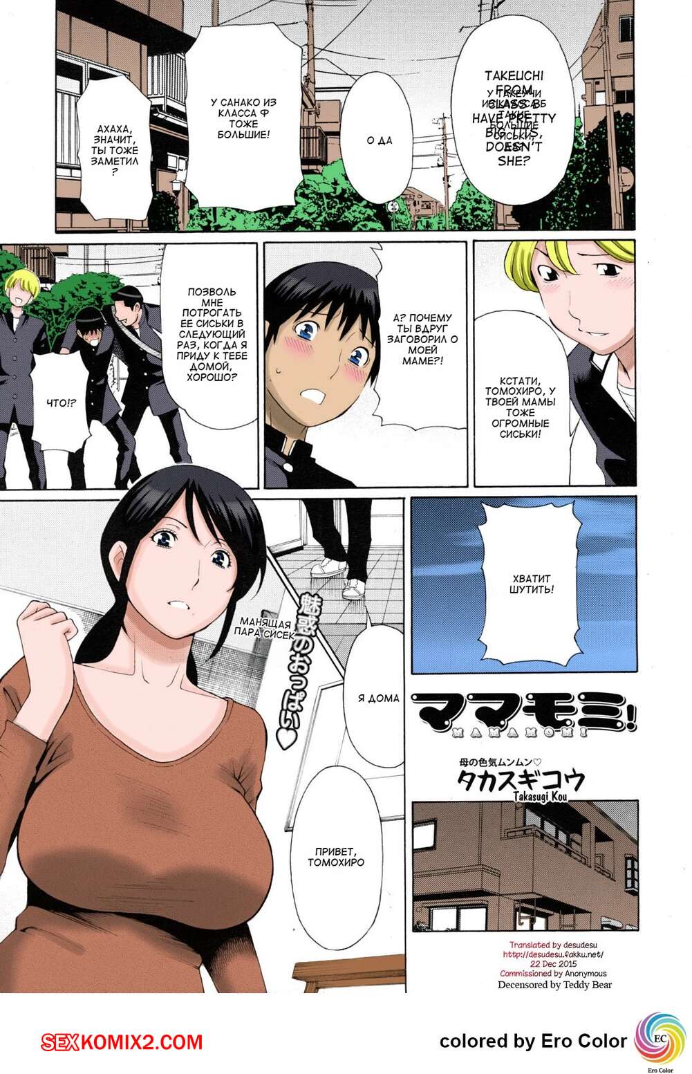 Порно комикс Посмотри на маму. Mamamomi. Takasugi Gou. Парень решил соблазнить свою горячую мамашу, когда она вернулась домой после работы он запустил свой план. Он знал, что она не сможет удержаться при виде его хуя.