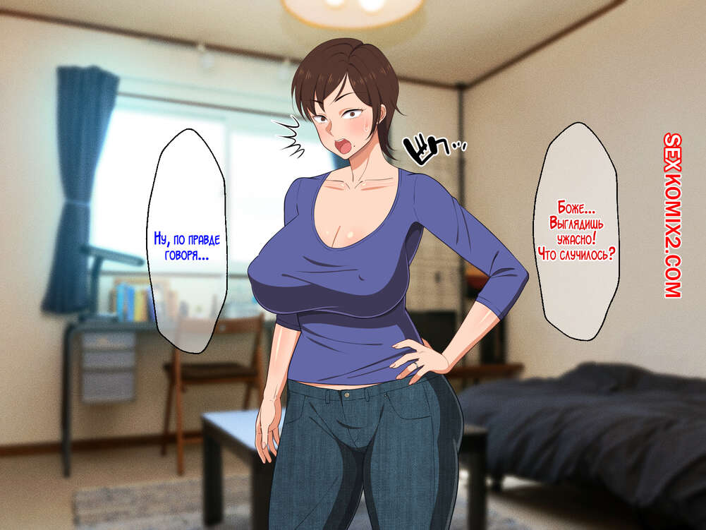 Порно комикс Моя мама страшна в гневе, но её стоны прекрасны. Haruharutei Сексуальная брюнетка милфа возбудилась при виде большого члена своего сына. Красотка разделась и отсосала хуй парня, после чего дала ему себя выебать.