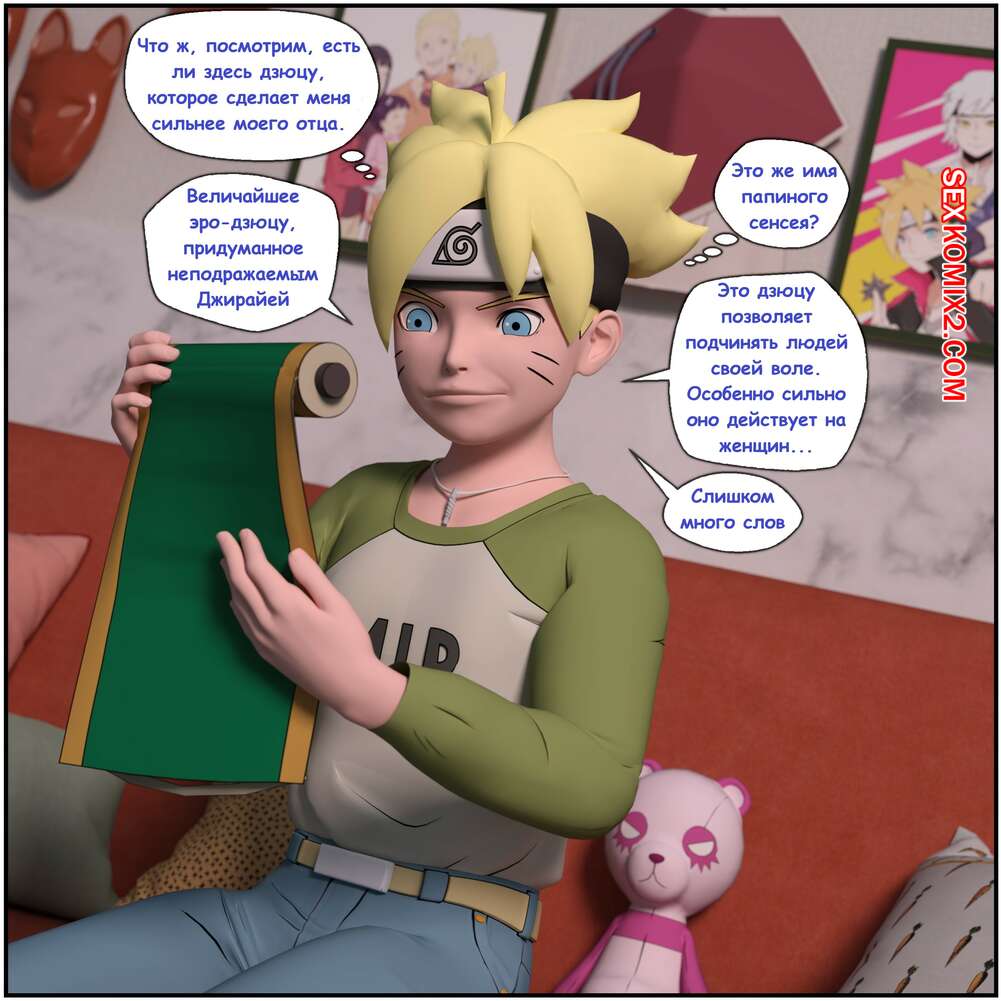 Порно комикс Naruto. Боруто и свиток Джирайи. Boruto and the Jiraiya Scroll. Darkfaust Боруто овладел волшебным свитком, благодаря которому он может управлять своей горячей мамочкой. Красотка разделась перед сыном и позволила ему потрогать свои большие сиськи, после чего отсосала его член.