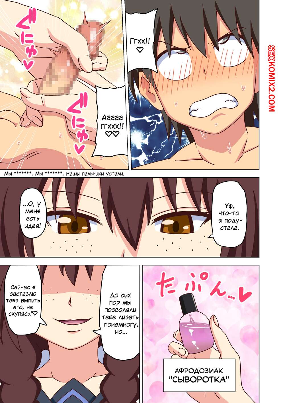 Порно комикс История футфетишиста. Часть 30. Nush Молодые горячие красотки были очень возбуждены и решили повеселиться со своим дружком. Они дали парню полизать свои ножки, после чего подрочили ими хуй парня и помогли ему кончить.