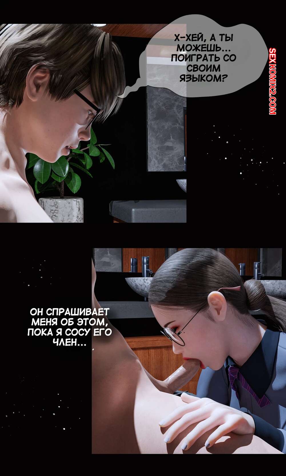 Порно комикс Моя соседская вдова. Часть 3. My Neighbors Widow. Rose Blue 3D. Сексуальная брюнетка отвела парня в уединенное место, желая с ним повеселиться. Красотка встала на колени и стала сосать большой хуй парня, от чего он быстро кончил.