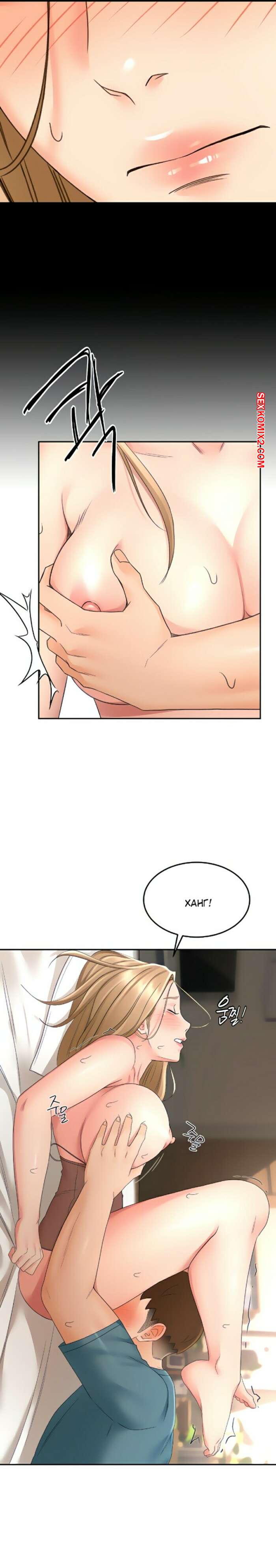 Порно комикс Мой милый тренер. Части 44 и 45 и 46. The Little Master Сексуальная блондинка была очень возбуждена и хотела трахаться. Красотка разделась и отсосала большой хуй парня, после чего оседлала его член и дала ему себя выебать.