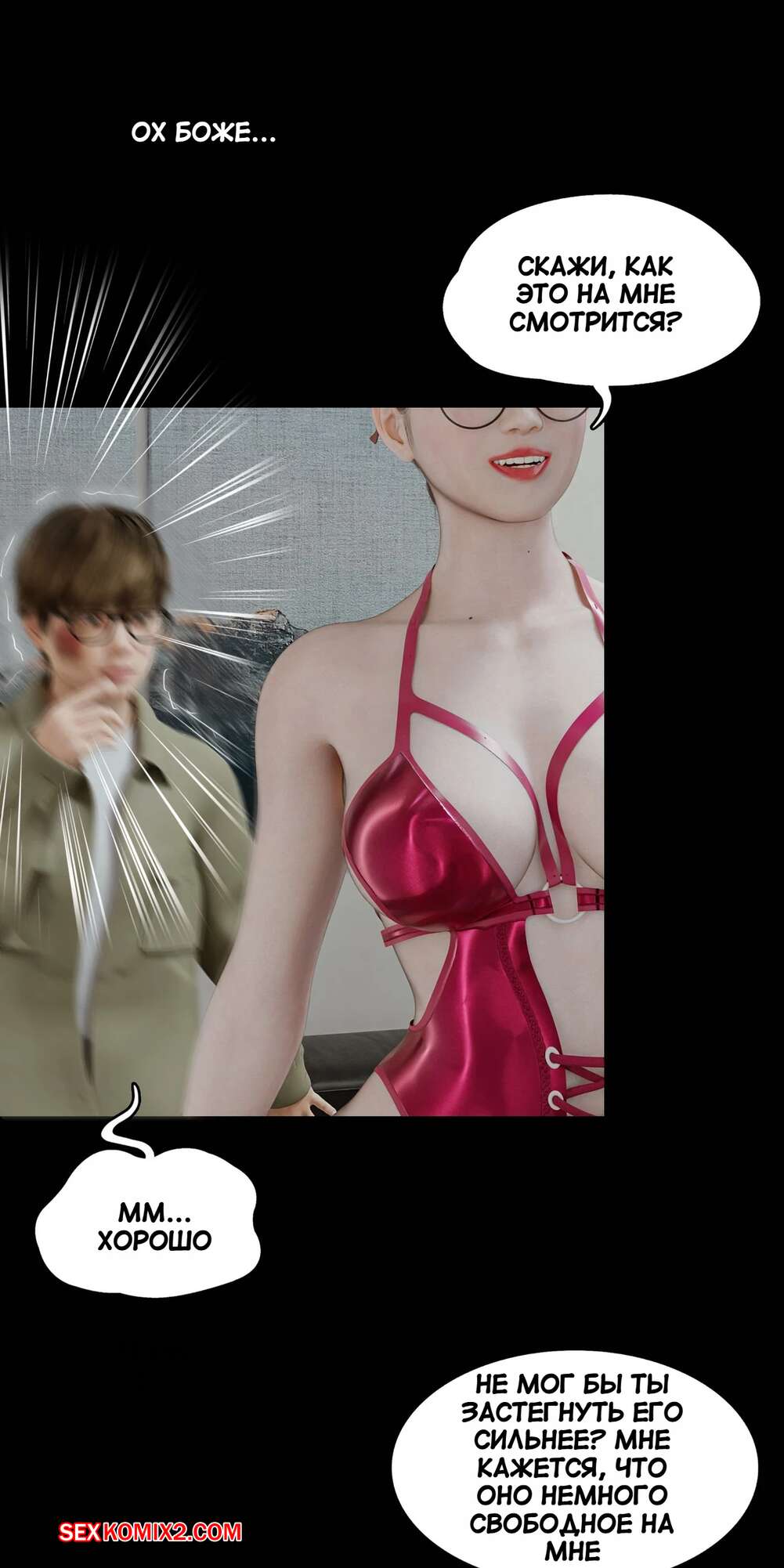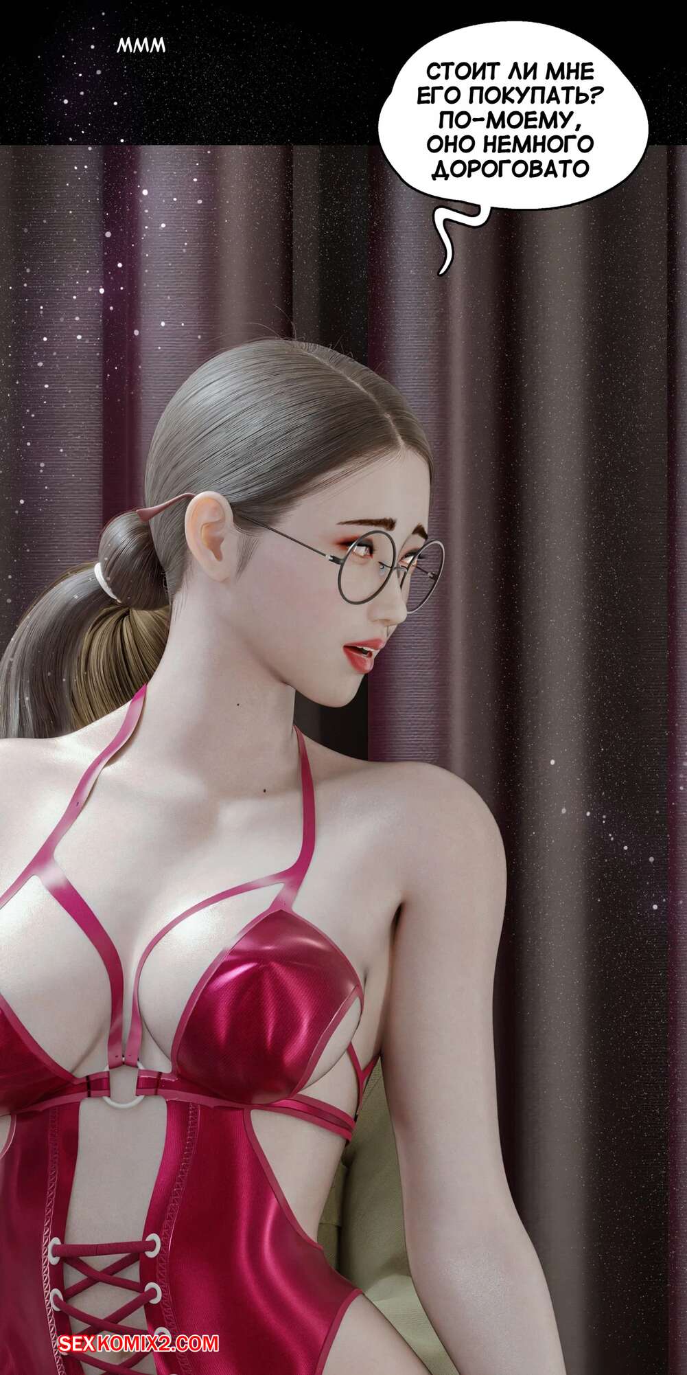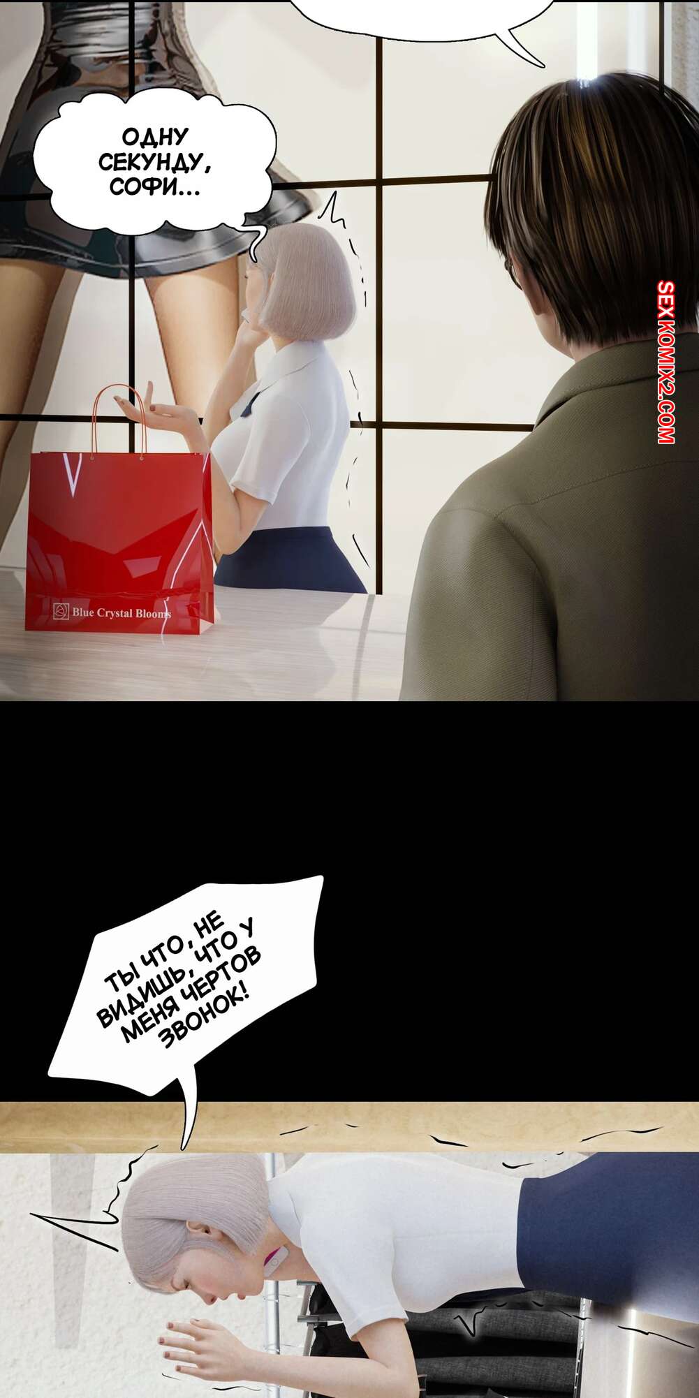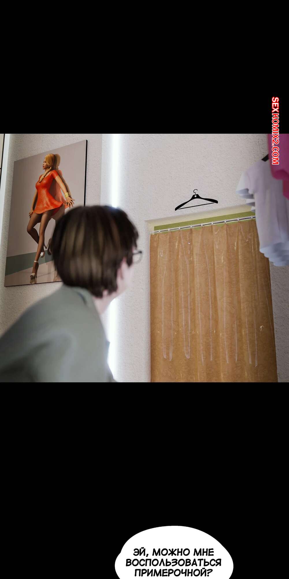 Порно комикс Моя соседская вдова. Часть 5. My Neighbors Widow. Rose Blue 3D. Сексуальная брюнетка пригласила парня пройтись с ней по магазинам. Девушка примеряла сексуальный наряд и попросила парня оценить как он выглядит. В примерочной девушка стала целовать своего спутника, желая заняться с ним сексом.