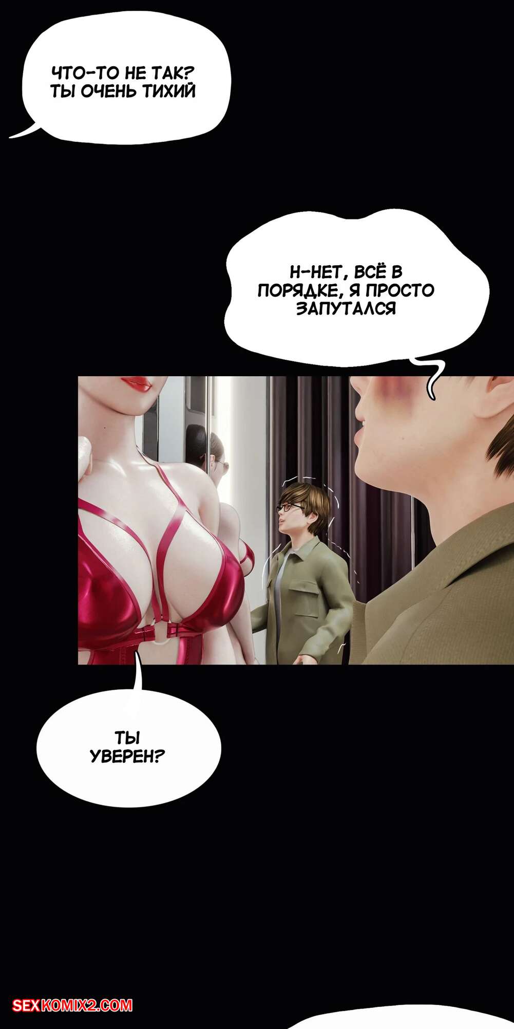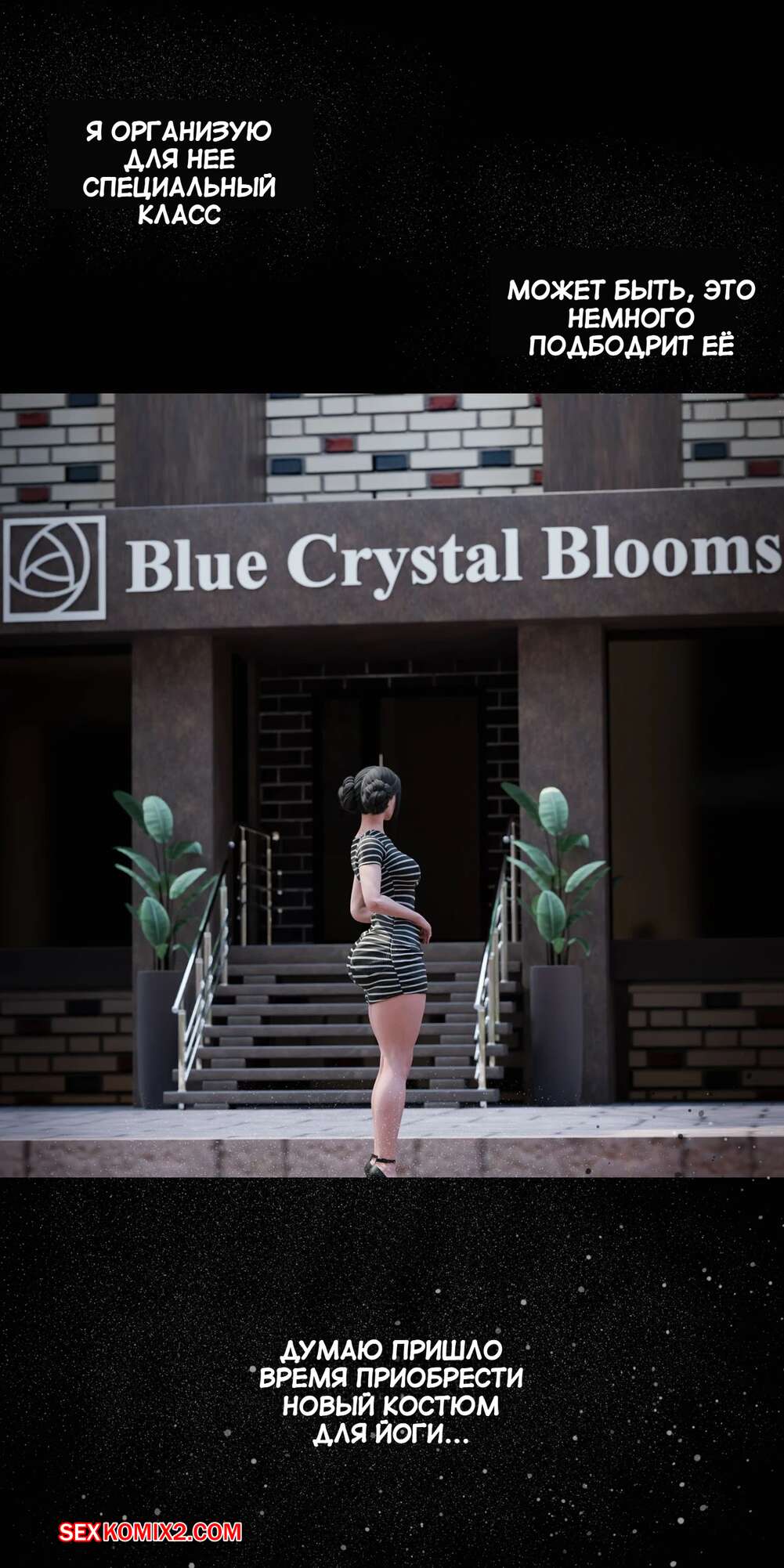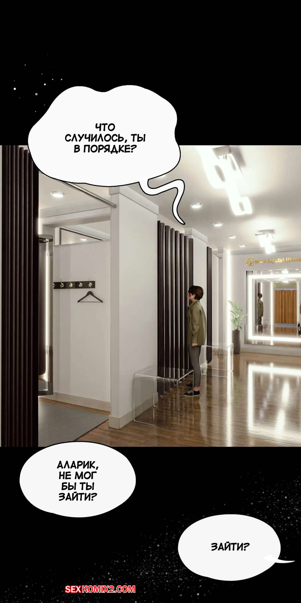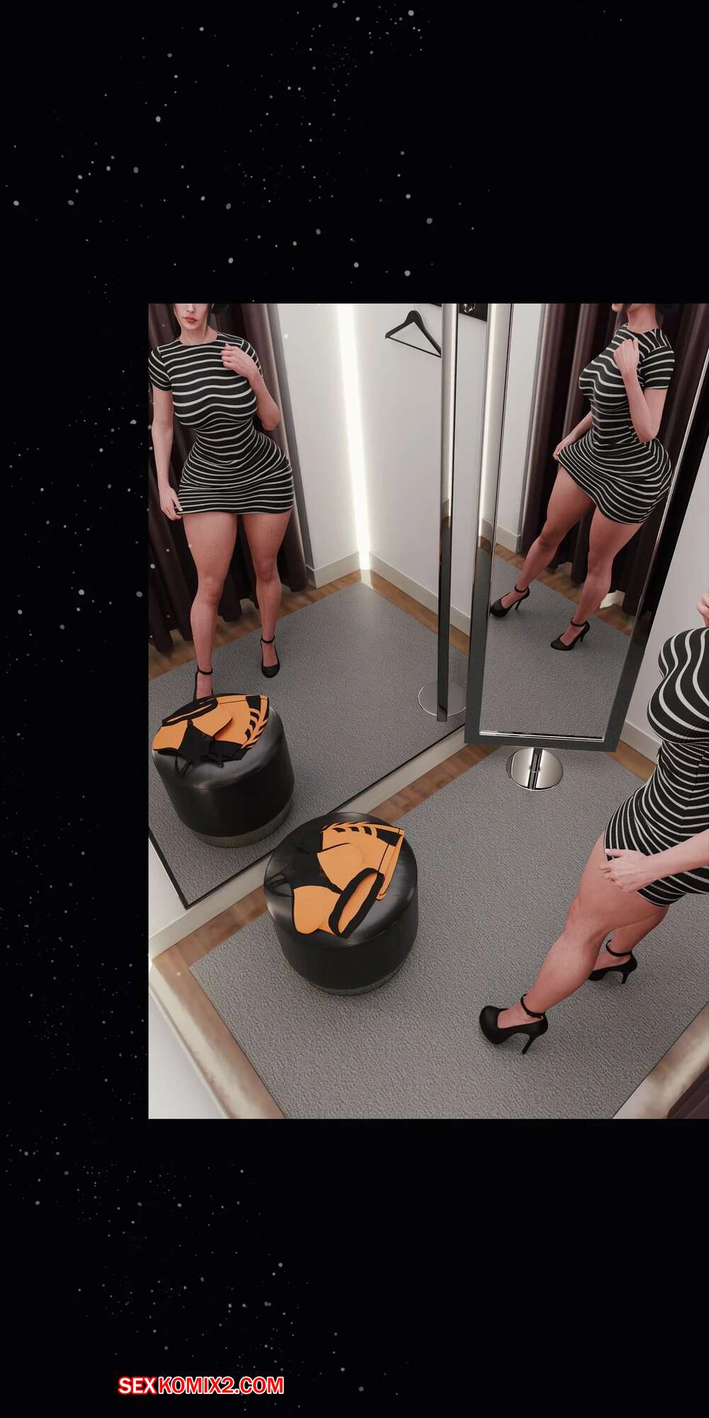 Порно комикс Моя соседская вдова. Часть 5. My Neighbors Widow. Rose Blue 3D. Сексуальная брюнетка пригласила парня пройтись с ней по магазинам. Девушка примеряла сексуальный наряд и попросила парня оценить как он выглядит. В примерочной девушка стала целовать своего спутника, желая заняться с ним сексом.