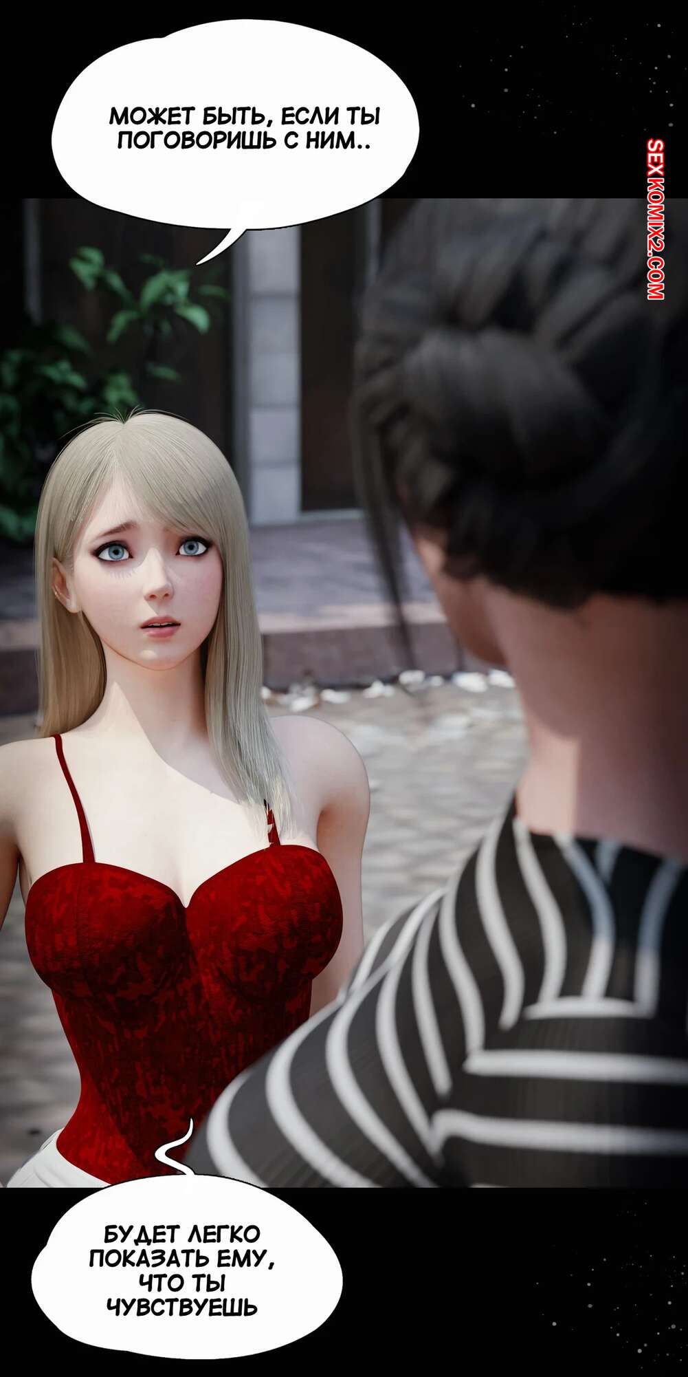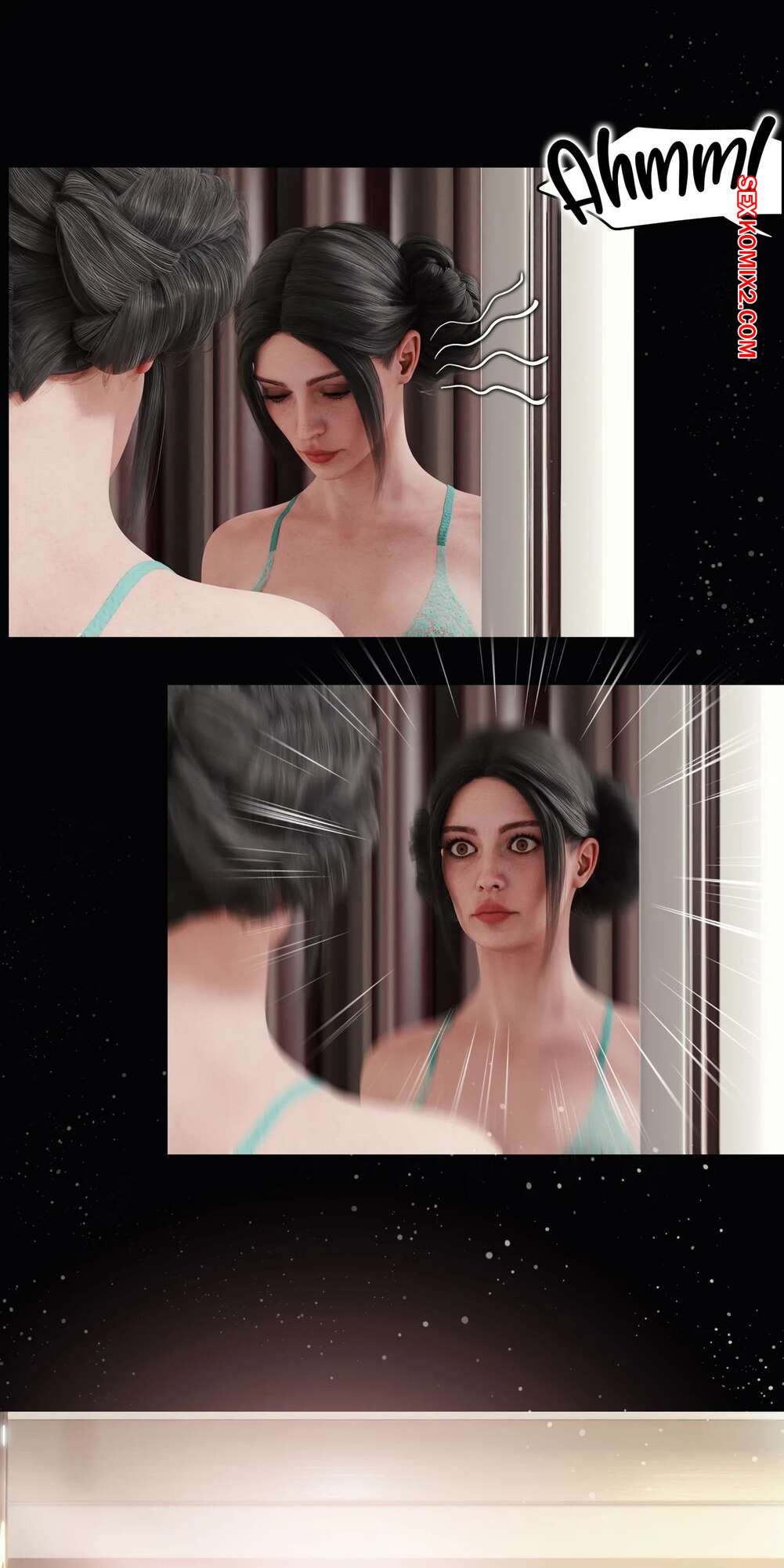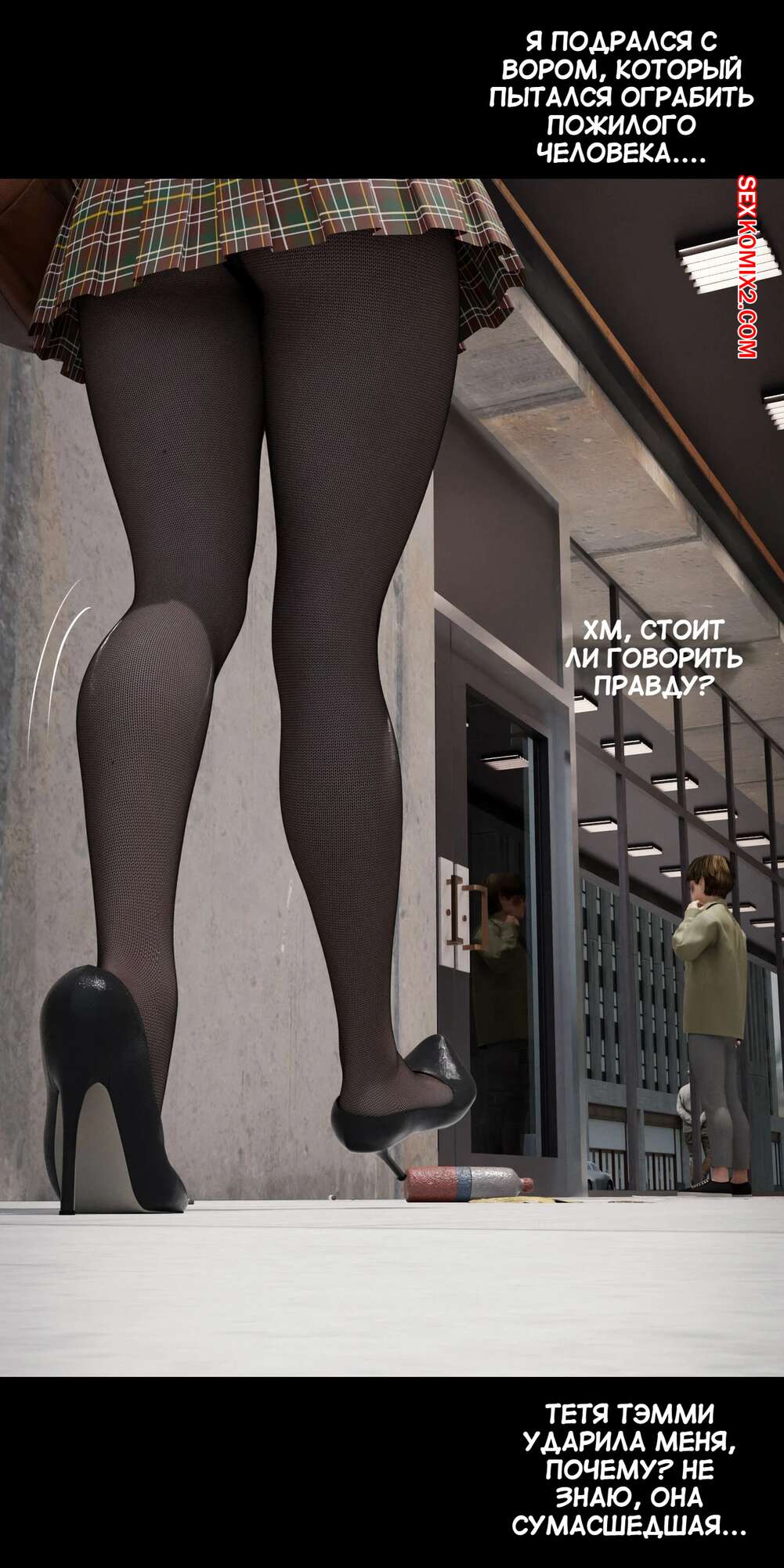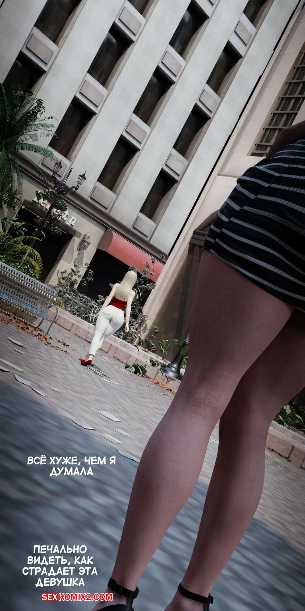 Порно комикс Моя соседская вдова. Часть 5. My Neighbors Widow. Rose Blue 3D. Сексуальная брюнетка пригласила парня пройтись с ней по магазинам. Девушка примеряла сексуальный наряд и попросила парня оценить как он выглядит. В примерочной девушка стала целовать своего спутника, желая заняться с ним сексом.