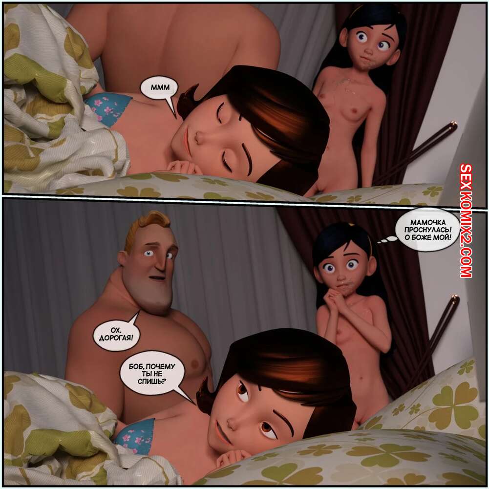 Порно комикс Суперсемейка. Секреты семьи Пэрр. Часть 1. Parr Family Secrets. DarkFaust. Горячая красотка Фиалка была очень возбуждена ночью и отправилась в комнату к своим родителям. Девушка стала сосать большой хуй своего отца, после чего он покрыл ее своей спермой.