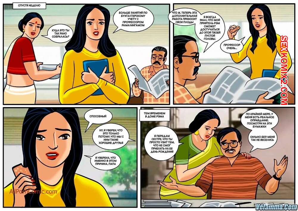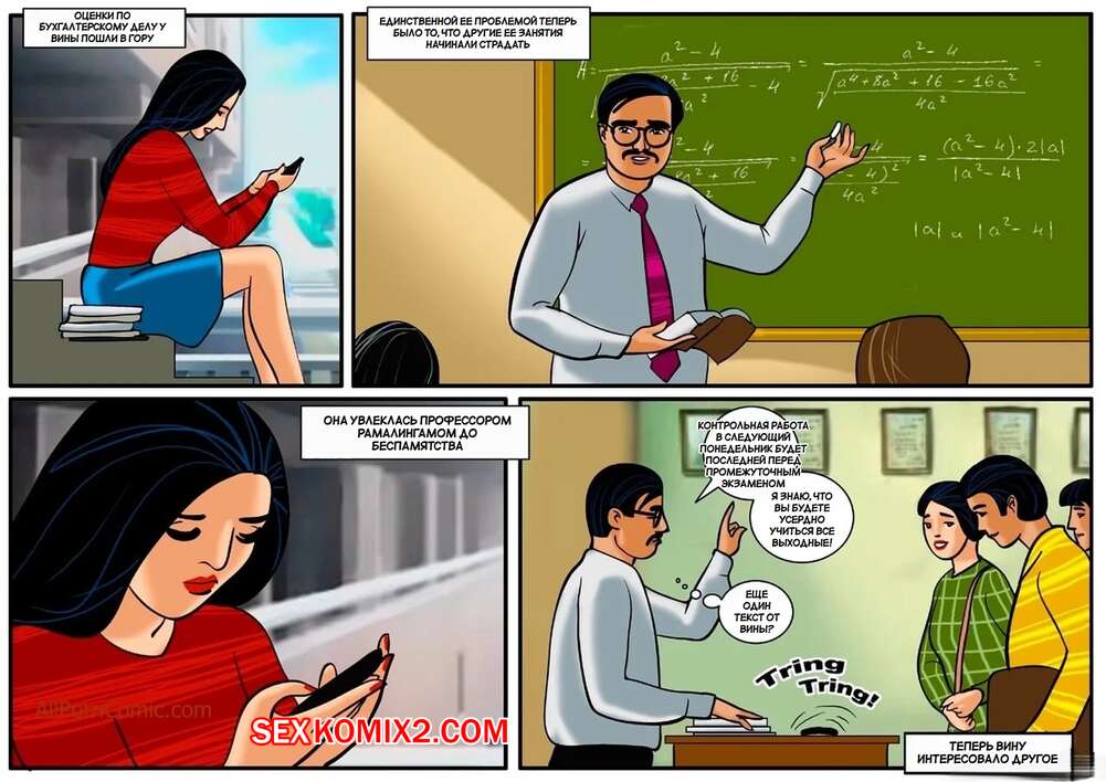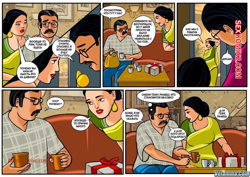 Порно комикс Веена. Часть 1. Veena. Velamma. Сисястая брюнетка милфа обожает трахаться, но недовольна сексом со своим мужем. Красотка соблазняет парней вокруг и отсасывает у них, после чего занимается с ними страстной еблей.