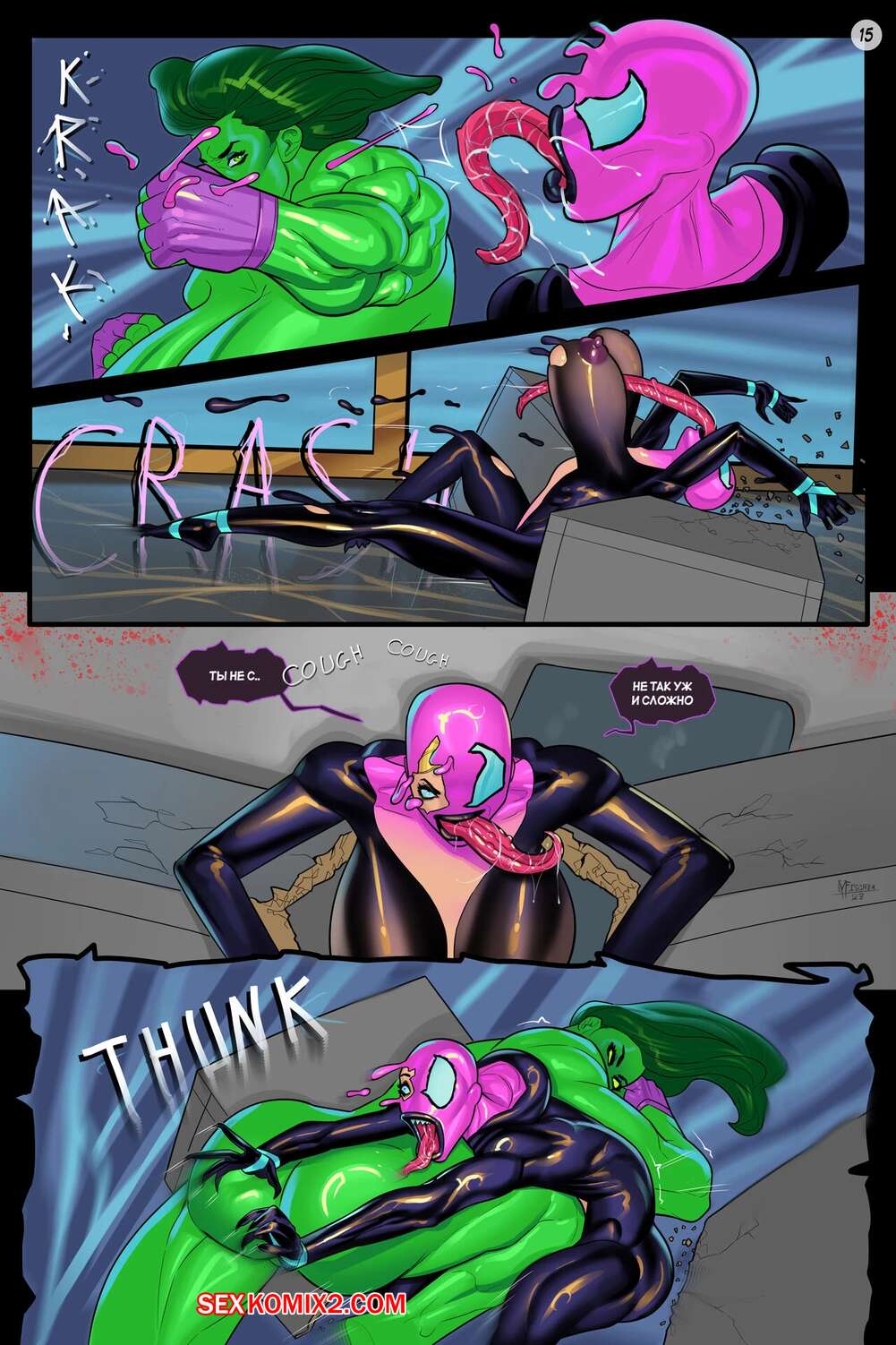 Порно комикс Поцелуй венома. Часть 3. Venoms Kiss. MeinFischer. Веном нападает на горячих красоток, желая развлечься. Он раздевает девушек и возбуждает их, после чего трахает девушек во все дырочки, от чего они кайфуют.
