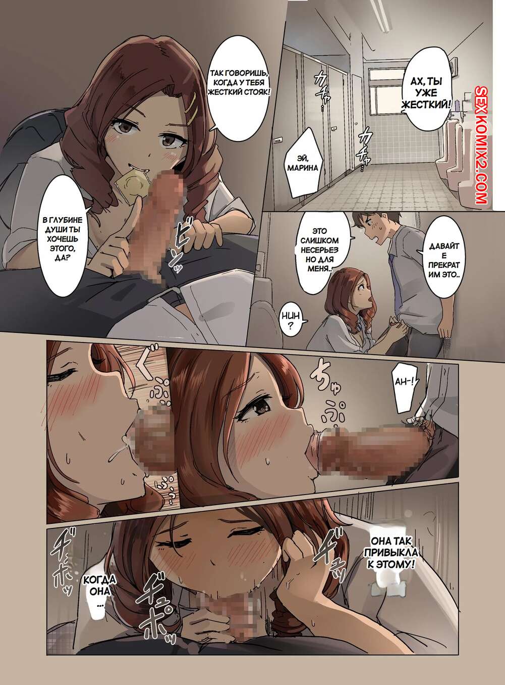 Порно комикс Чистая девушка стала шлюхой. The Pure Girl Became a Slut. Wakamatsu Молодая горячая брюнетка была очень возбуждена и решила повеселиться с парнем в школьном туалете. Красотка разделась и отсосала большой хуй парня, после чего дала ему выебать свою пизденку.