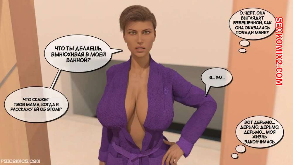 Порно комикс Визит в семью. Пролог. Эпизод 2. The Visit Family. Stiglet Сисястая милфа решила потренироваться вместе со своим племянником и заметила какой у него стояк, при виде ее шикарного тела. Вечером милфа отправилась в комнату к парню, где показала ему свои сиськи и стала дрочить хуй племянника.