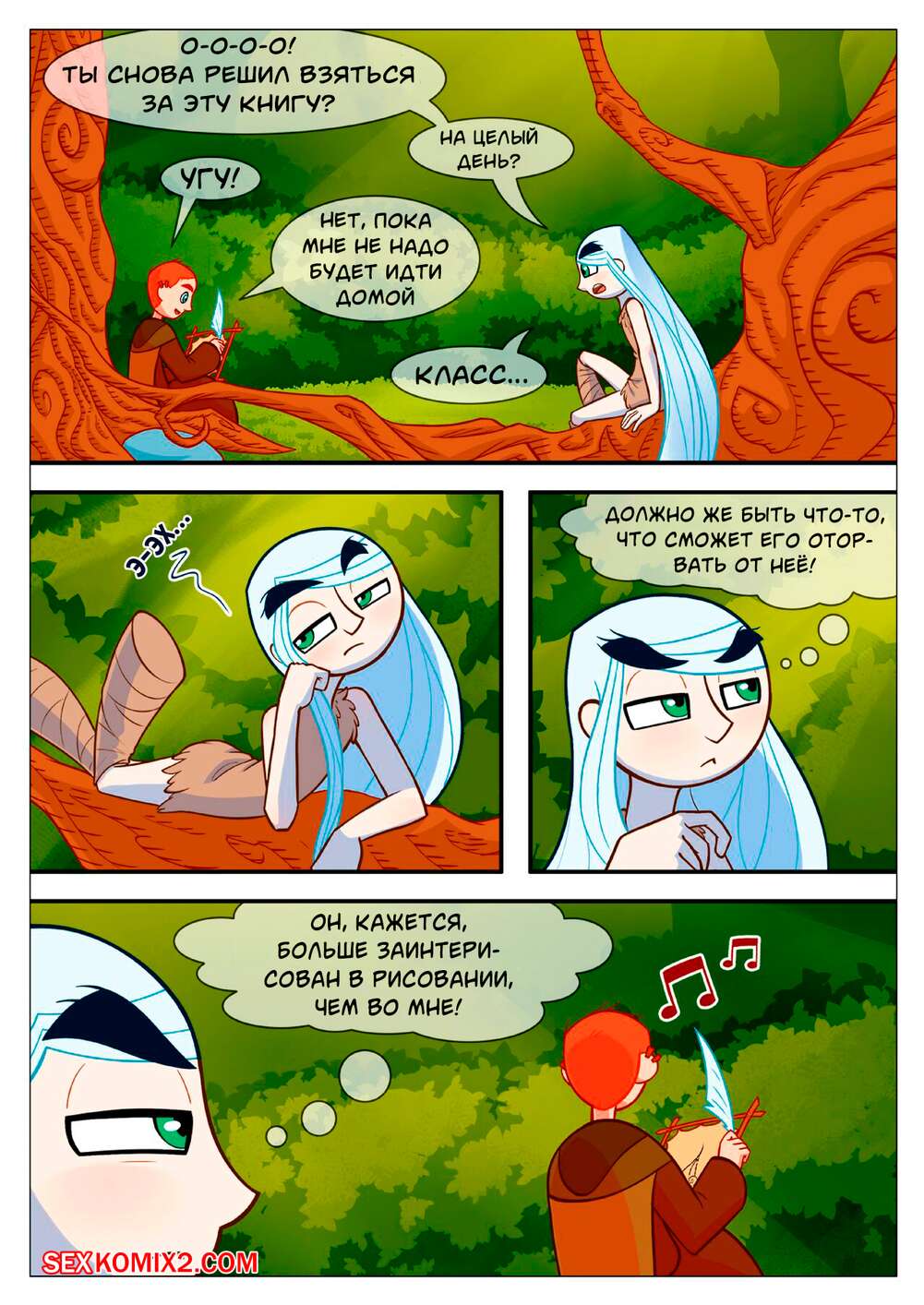 Порно комикс The Secret Of Kells. Зов природы. Natures Call. SoulCentinel. Сколько можно писать эту книгу? Когда-то надо и трахаться. Вот девушки и сняла с парня штаны и принялась сосать его хуй.