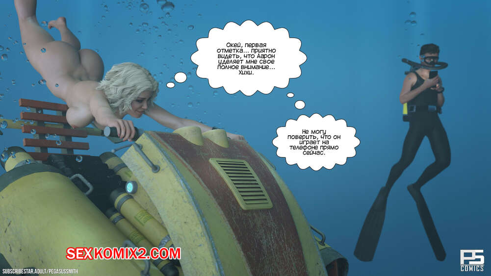 Порно комикс Бесплатное сексуальное погружение. Free Sexual Drive. Pegasus Smith. Сисястая блондинка мечтает о погружении в океан абсолютно голой. Спустившись поглубже, девушка застала одного из дайверов, который ей помогал, за дрочкой. Красотку это очень возбудило и она решила пососать большой хуй парня.