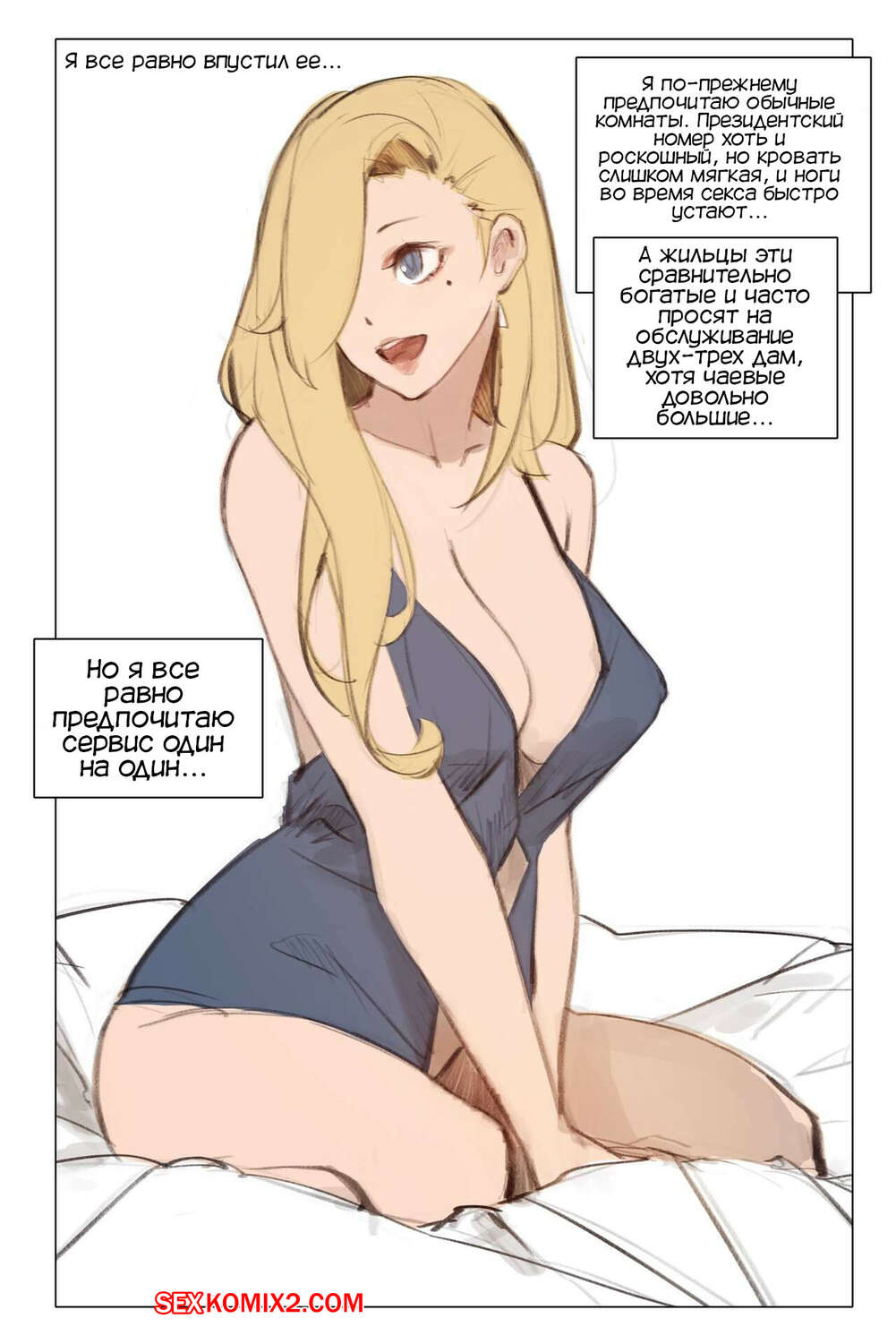 Порно комикс Секс отель. Sex Hotel. Dako Сексуальная блондинка милфа пришла в комнату к своему клиенту, чтобы оказать ему свои услуги. Пара вместе приняла душ, после чего девушка дала парню выебать свою пизденку.