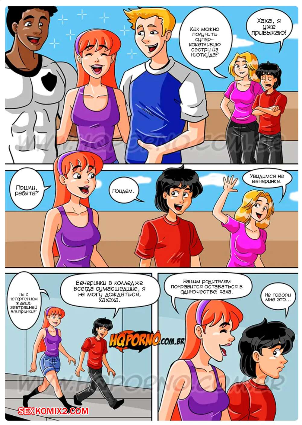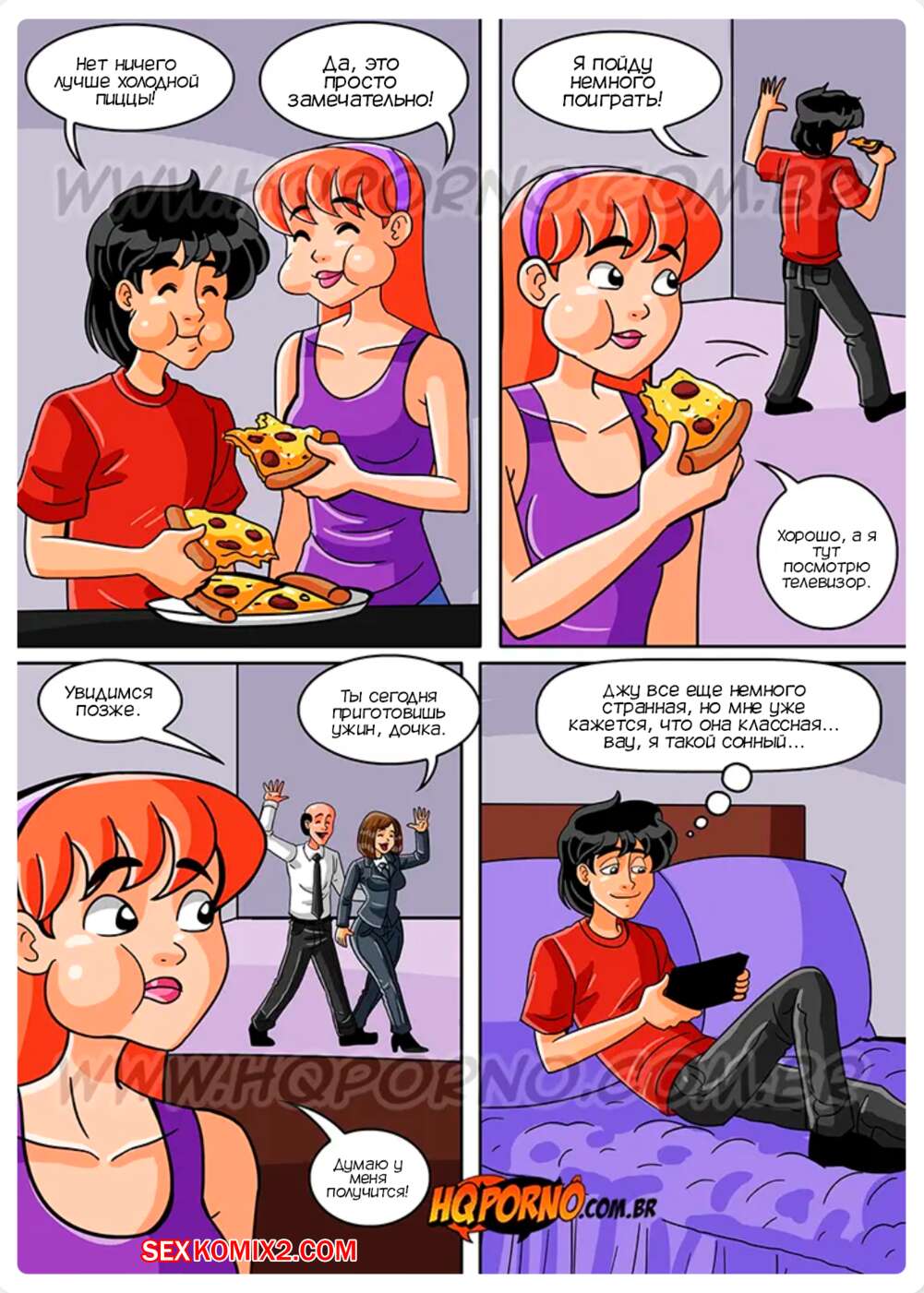 Порно комикс Семейка порно. Часть 7. Familia Foda. HQPorno Игорь остался наедине со своей сводной сестренкой. Девушка уснула и ей приснился сон, где она занимается сексом с двумя парнями. Красотка стала дрочить свой пизденку, а ее сводный братик стал дрочить, слушая стоны девушки.