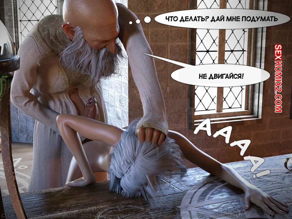Порно комикс КЛОЯ. Трон. Часть 2. CLOE. The Throne. SedesDiS Старик раздел молодую горячую блондинку и стал ласкать ее пизденку, возбуждая девушку. Дедок вставил свой хуй в красотку и хорошенько выебал ее, но им помешали.