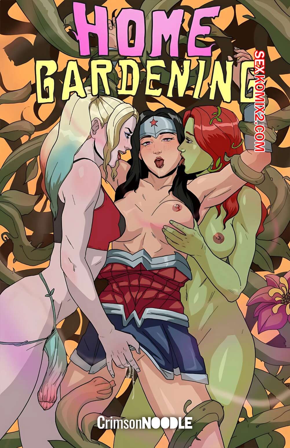 Порно комикс Лига справедливости. Ядовитый плющ и Чудо Женщина. Crimson Noodle.