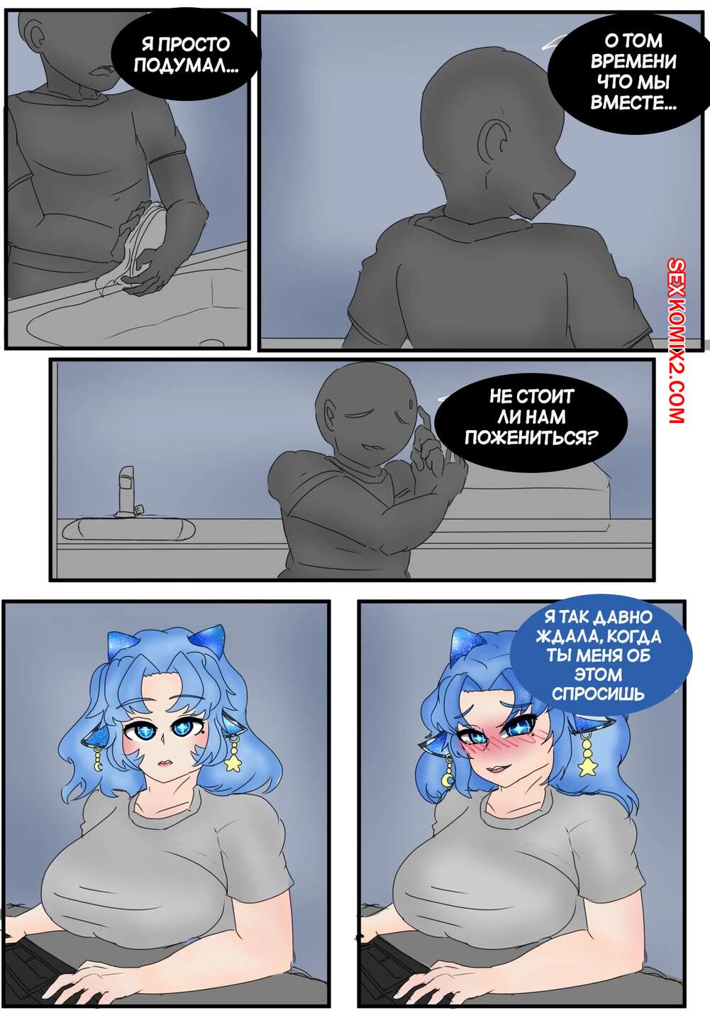 Порно комикс Мой единственный Стар Гейзер. My Only StarGazer. miilkywayz Горячая сисястая красотка была очень возбуждена и решила повеселиться со своим дружком. Она разделась и отсосала большой хуй парня, после чего дала ему себя выебать.