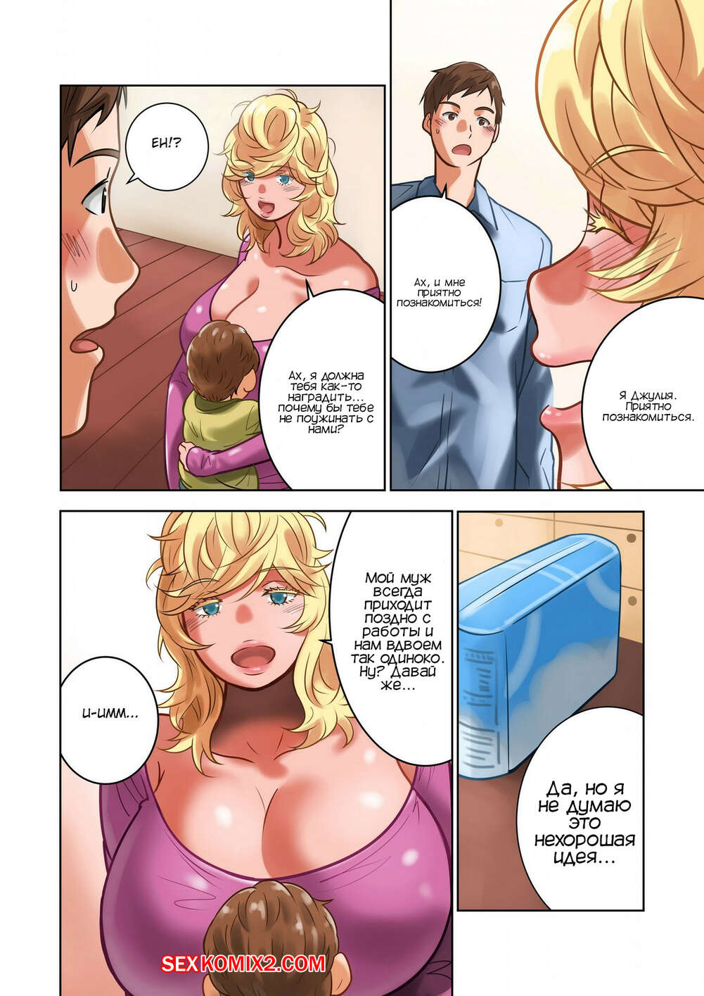 Порно комикс Добрая соседка. Chichinomi K Cup Hitozuma Julia san no Bonyuu. Sylvestre Kiddye Молодой парень помог горячей соседке милфе и она пригласила его к себе домой, чтобы наградить за помощь. Красотка решила потереть парню спинку, но в итоге дала ему себя выебать и кончить в нее.