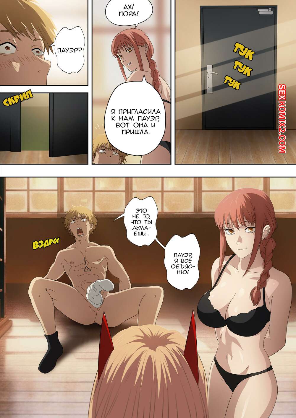 Порно комикс Chainsaw Man. Сделка с демоном ножек. FootCroft Горячие красотки решили повеселиться со своим парнем рабом. Они дали ему полизать свои ножки, после чего отсосали большой хуй паренька и дали ему себя выебать.