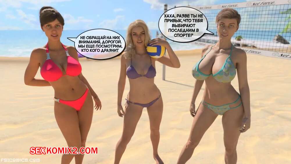 Порно комикс Визит в семью. Часть 9. Эпизод 1. The Visit Family. Stiglet Молодой парень оправился на пляж вместе с горячими красотками милфами. Девушки были в сексуальных купальник и пригласили паренька поиграть в волейбол, но ему было сложно сосредоточиться на игре.