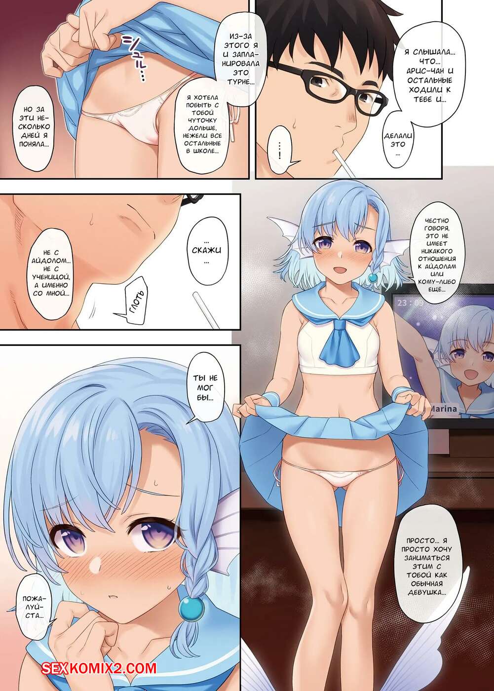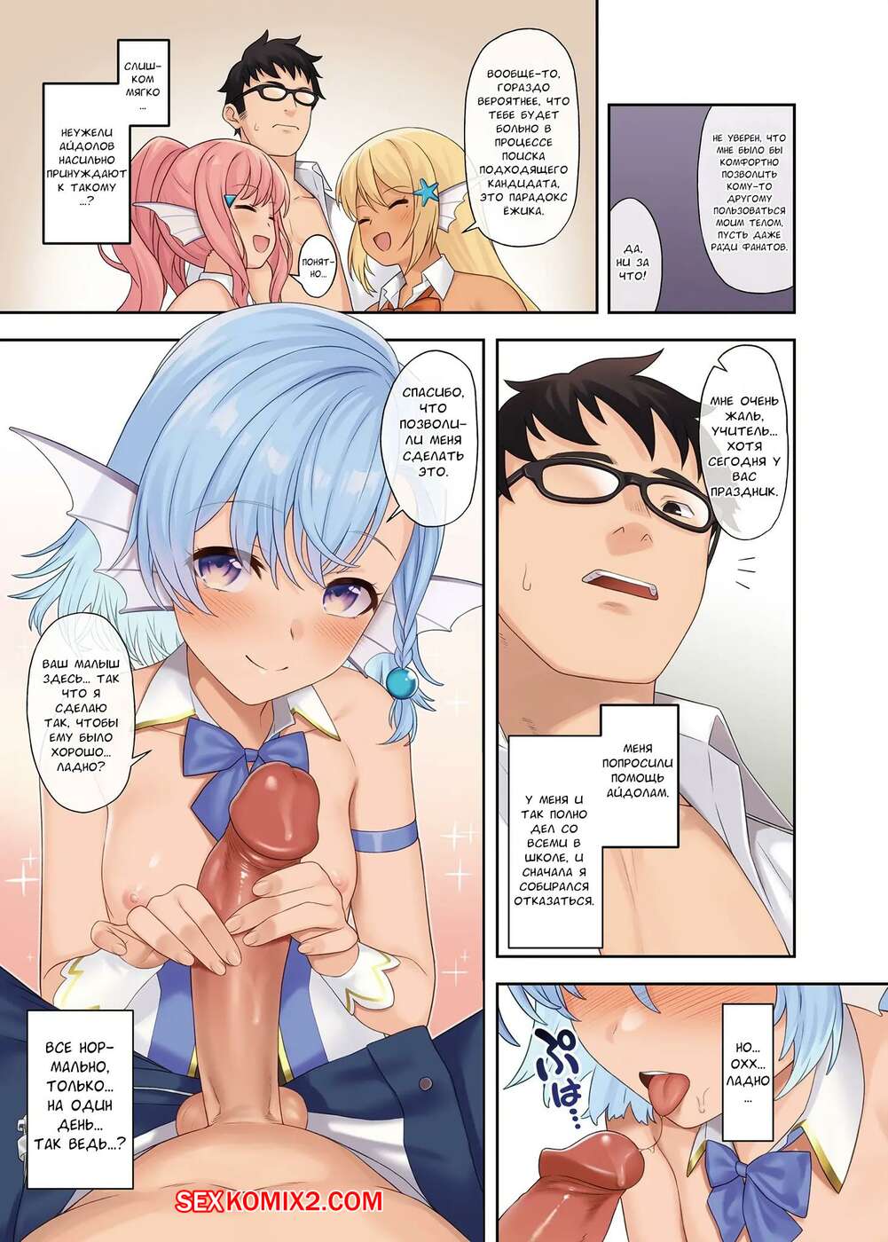 Порно комикс Помощь в спаривании. Aqua Marina. Takunomi Две девушки были очень возбуждены и решили повеселиться со своим дружком. Красотки разделись и отсосали большой хуй парня, после чего дали ему себя хорошенько выебать.