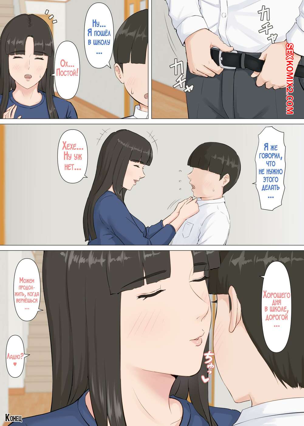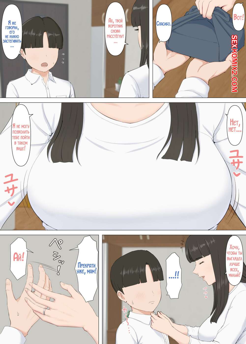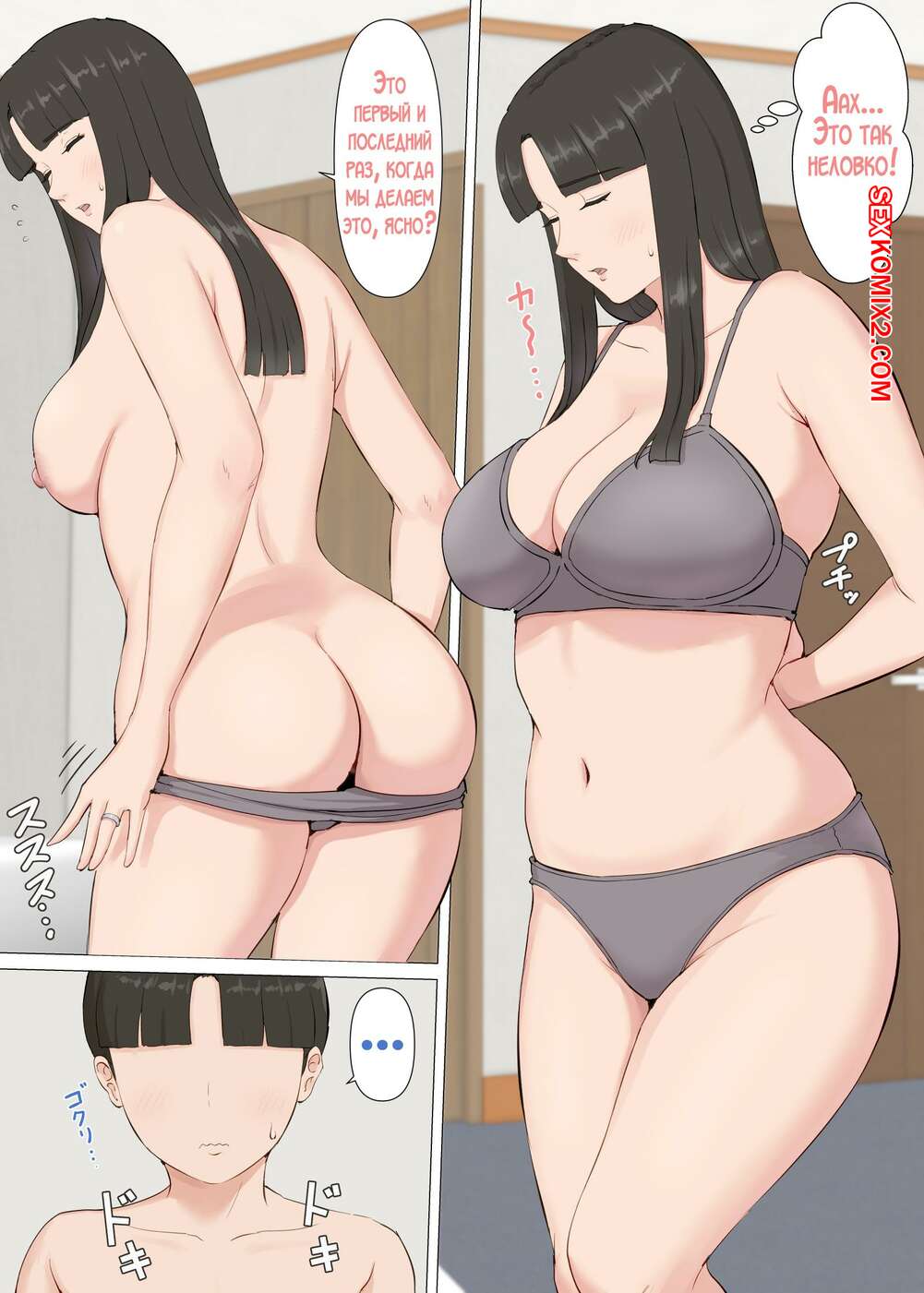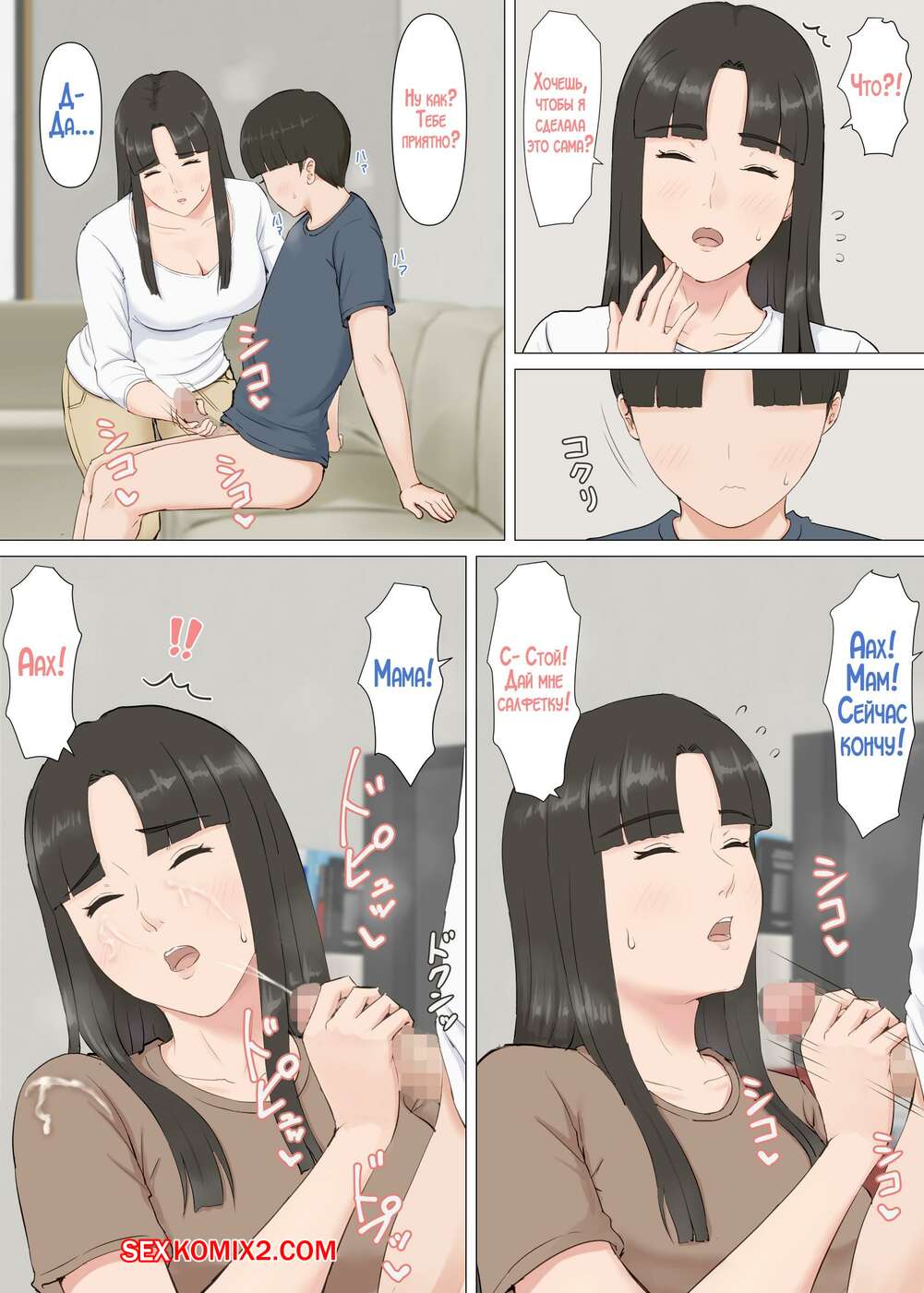 Порно комикс Кадзу и мама. Horsetail Сисястая брюнетка милфа была очень возбуждена и решила повеселиться со своим сыном. Красотка разделась и отсосала большой хуй парня, после чего дала ему себя выебать.