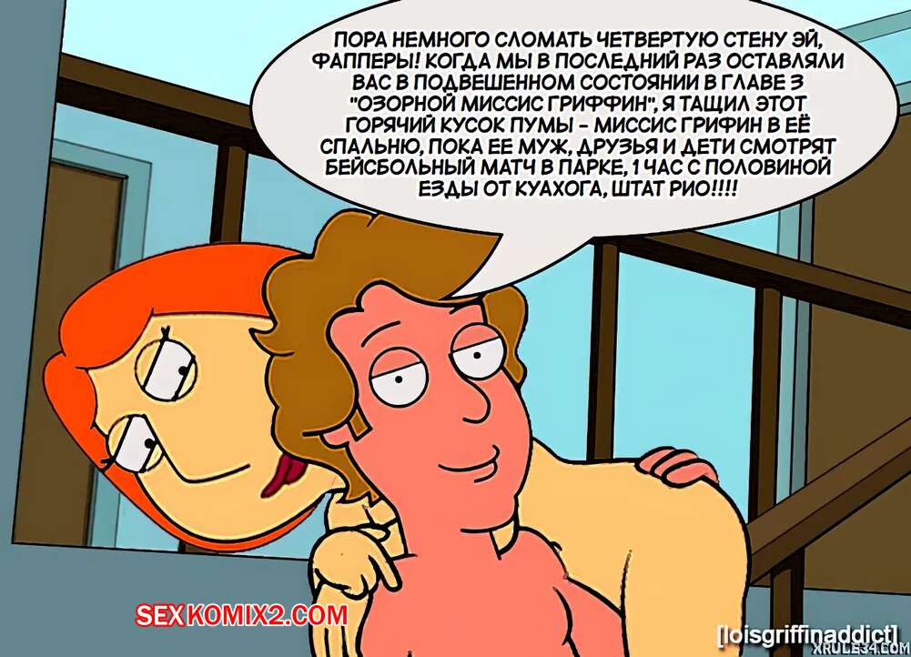 Порно комикс Гриффины. Извращенная миссис Гриффин 4. Naughty Mrs. Griffin. loisgriffinaddict. Горячая рыжая милфа обожает трахаться. Она встретилась с парнем и стала сосать его большой хуй, после чего дала ему себя хорошенько выебать, получив огромное удовольствие.