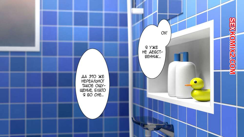 Порно комикс У моего брата он чертовски огромен. Часть 3. Kemuri Haku Горячая сисястая брюнетка была очень возбуждена и решила повеселиться со своим братиком в душе. Девушка встала на колени и стала дрочить хуй парня, желая помочь ему кончить.
