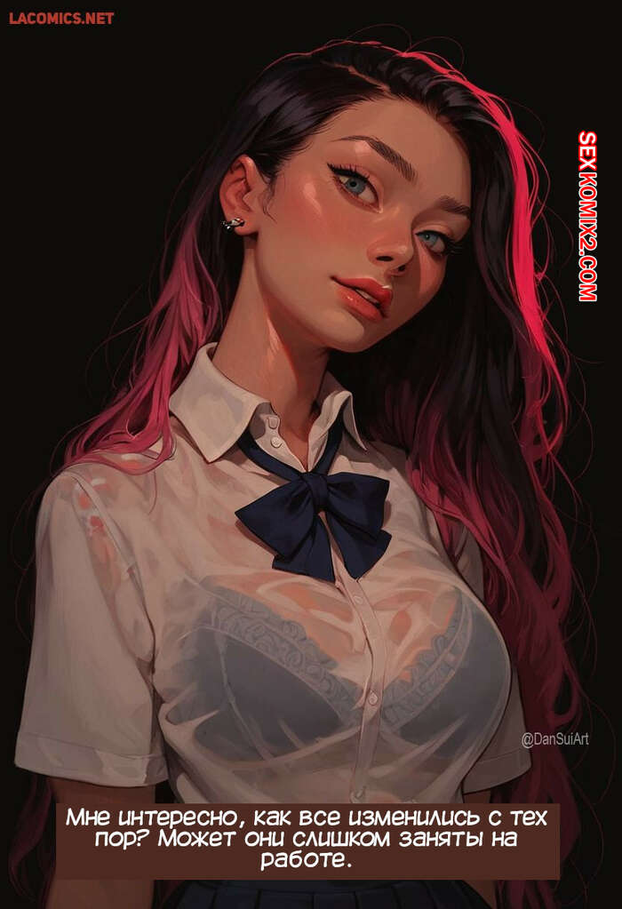 Порно комикс Воссоединение класса. Class Reunion. BlackPinkHair. DanSuiArt AI Горячая брюнетка встретилась со своими одноклассниками на встрече выпускников. Девушка возбудила парней шикарными телами, после чего дала им себя выебать во все дырочки и кончить в нее.