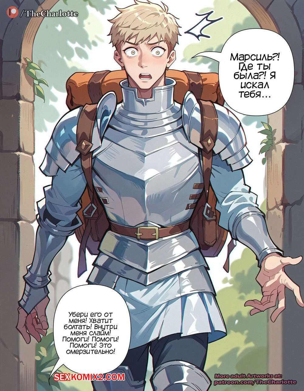 Порно комикс Марсиль покрыта слизью. Marcille gets Slimed. TheCharlotte. На горячую блондинку Марсиль напал слайм, желая повеселиться с девушкой. Он дал ей отсосать свой большой член, после чего выебал девушку, заполняя ее максимально глубоко.