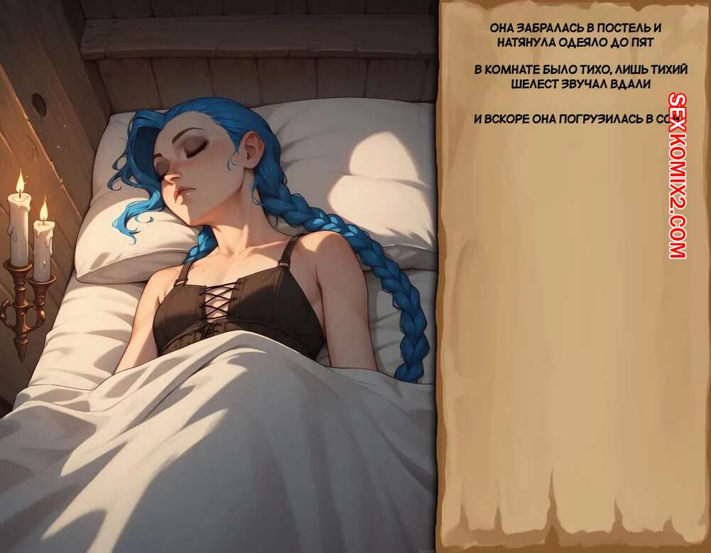 Порно комикс League of Legends. Путешествие Джинкс. Часть 2. Jinxs Journey. Day 2 Горячая красотка Джинкс легла спать в очень возбужденном состоянии. Ей стало сниться, что симпатичный парень пришел к ней в комнату и стал ласкать ее пизденку, доставляя девушке огромное удовольствие.