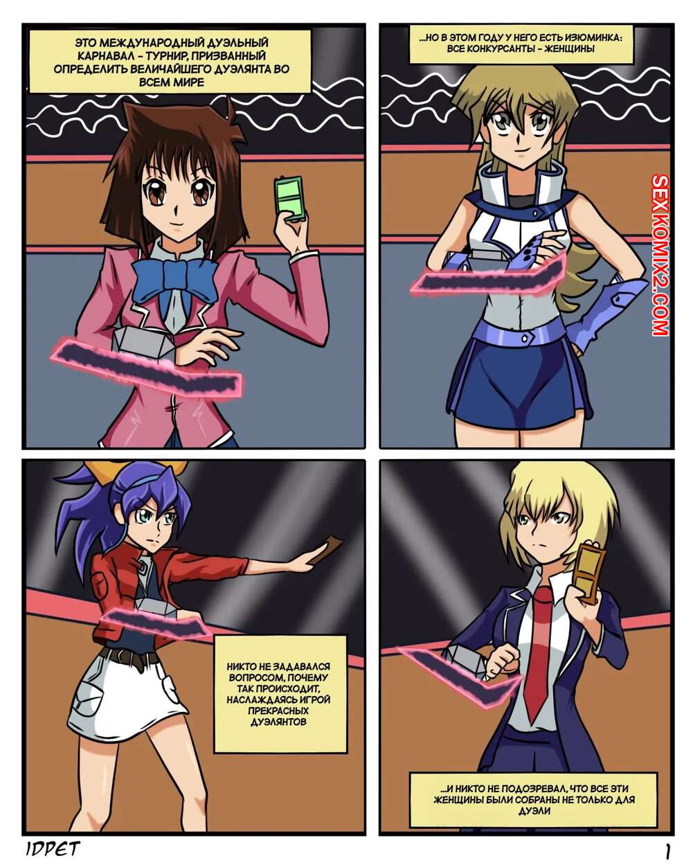 Порно комикс Приз раба дуэлянта. Duelists Slave Prix Горячие красотки с шикарными телами решили порадовать своего дружка. Девушки раздеваются и возбуждают парня шикарным телом, после чего дают ему себя выебать.