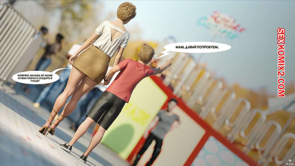 Порно комикс Поездка. Ride. Mr.Foxx. Горячая блондинка милфа отправилась в парк атракционов со своим сыном. Там они решили повеселиться и уединились под деревом, где красотка дала сыну себя выебать.
